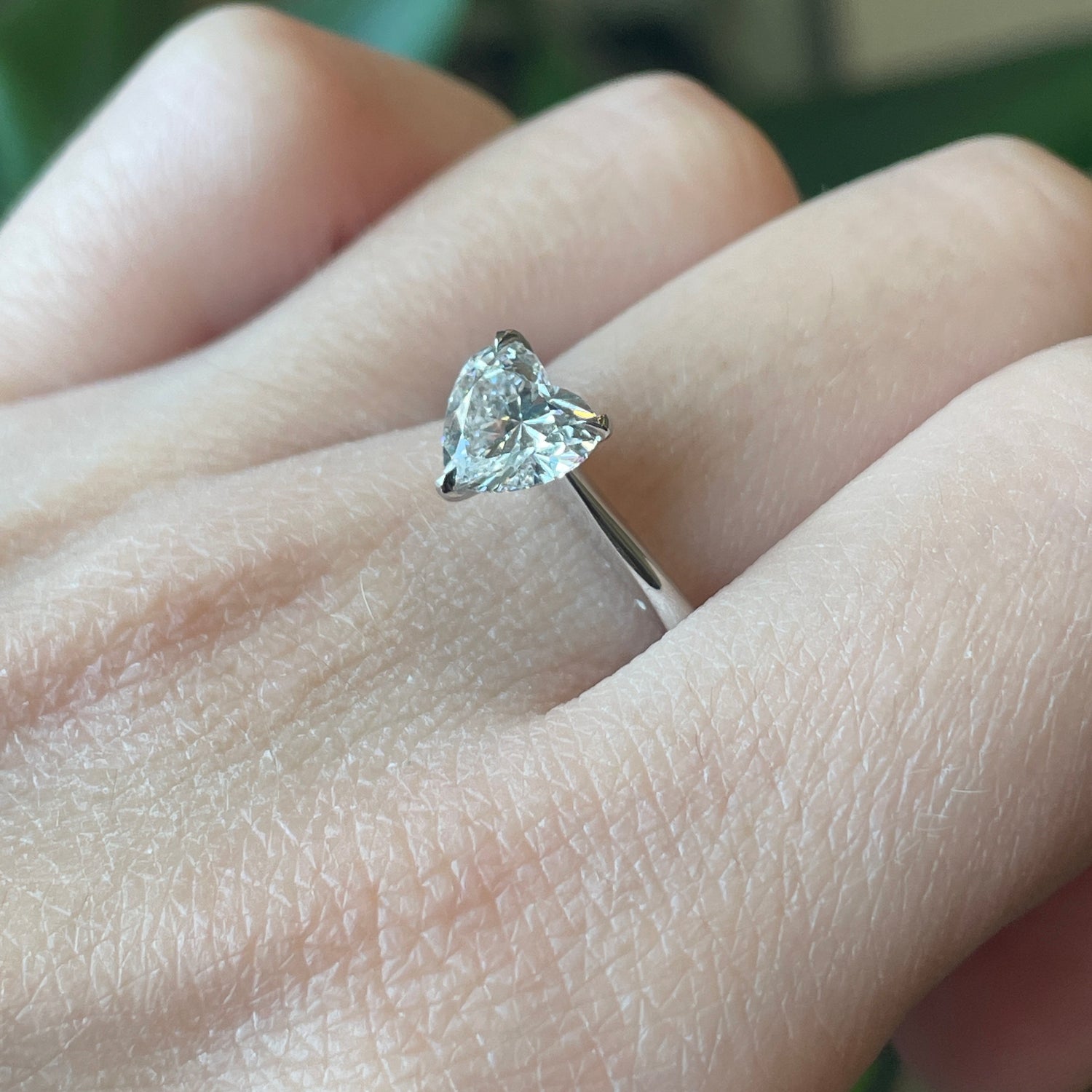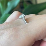 1.05 Ctw LAB Heart shaped Diamond solitaire ring in 14kt white gold ring setting. Diamond is E in color, VS1 in clarity. This ring is a size 7 but can be resized if needed, just drop us a note at checkout.