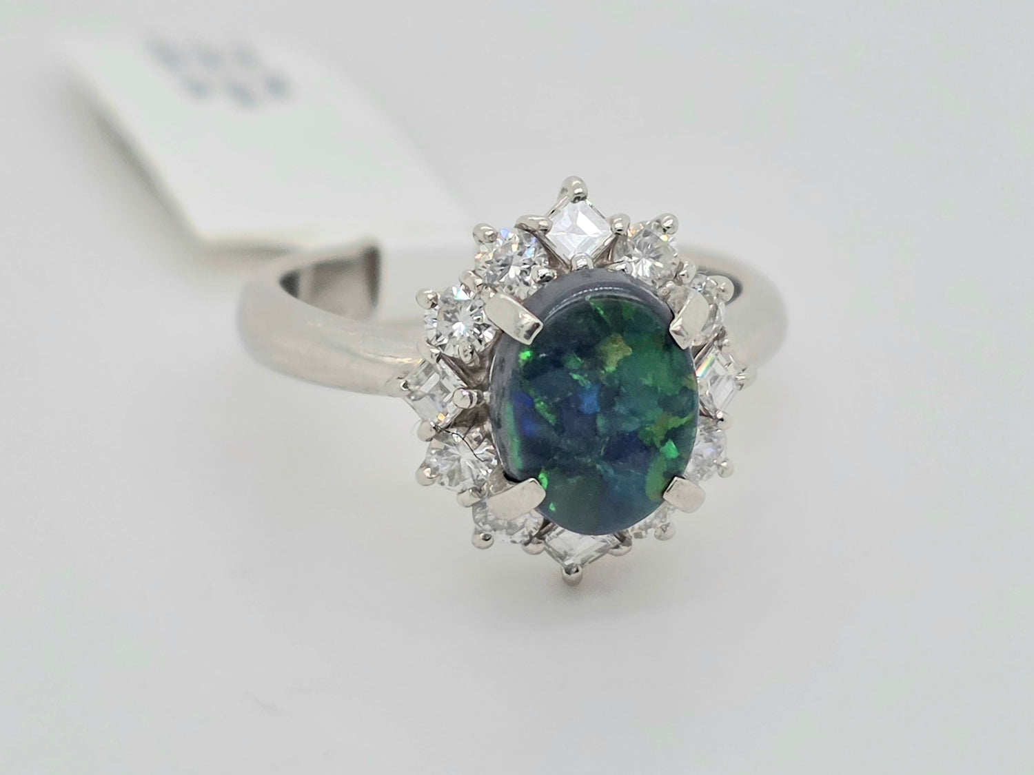 1.29ct Australian black opal & .68ctw natural diamond platinum ring. Ring is a size 6.5 and can be sized just let us know the size you need and we can quote a price.