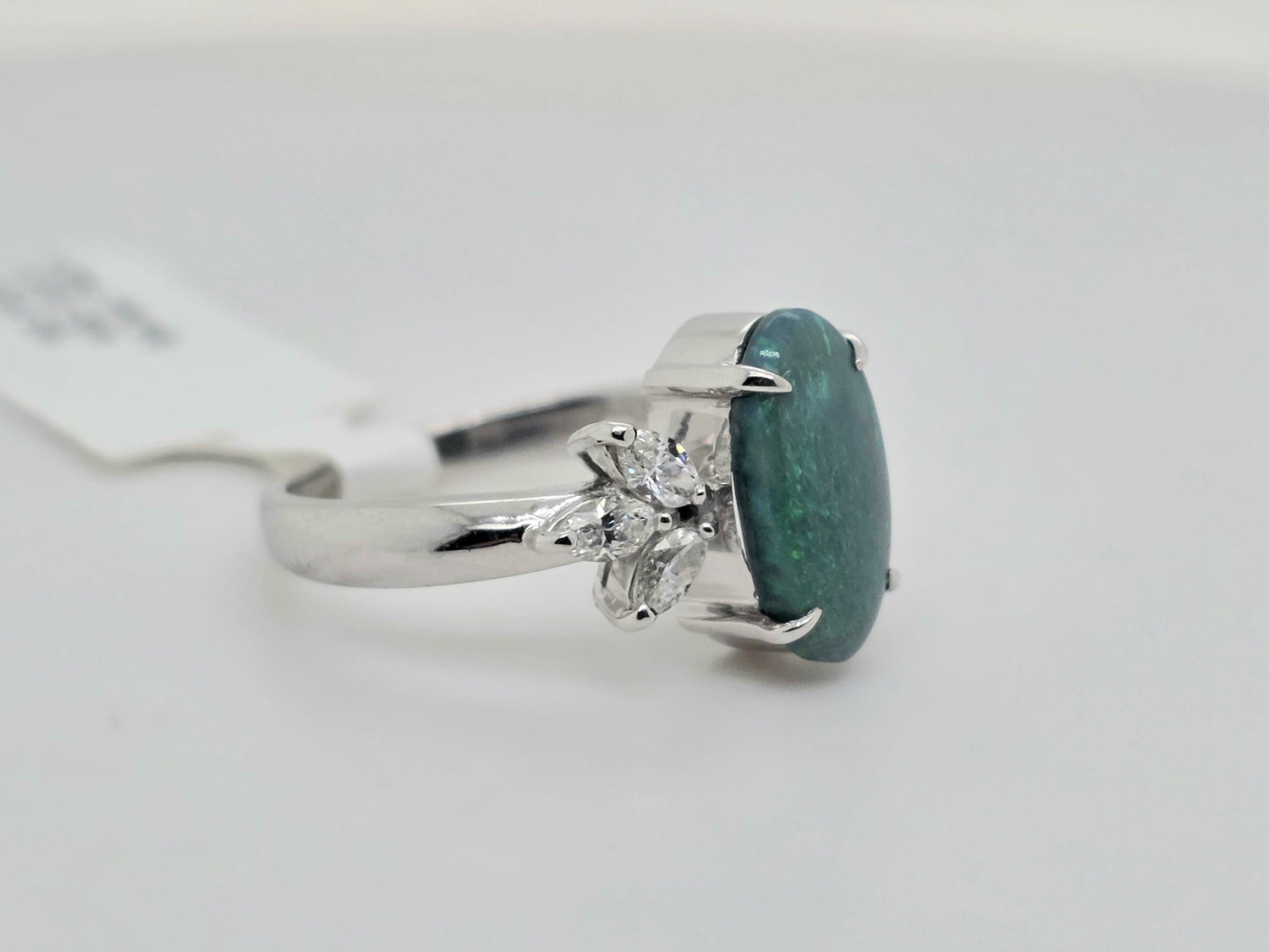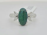 1.57ct oval black opal & .43ctw natural diamond ring in 18kt white gold