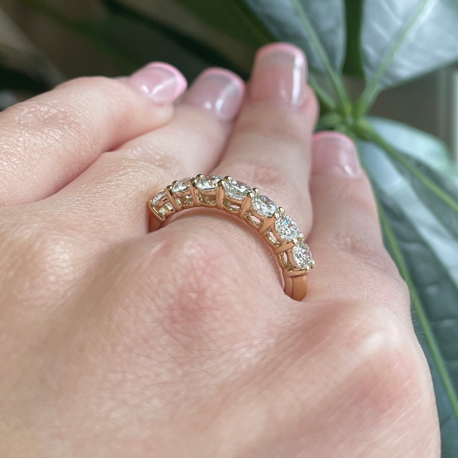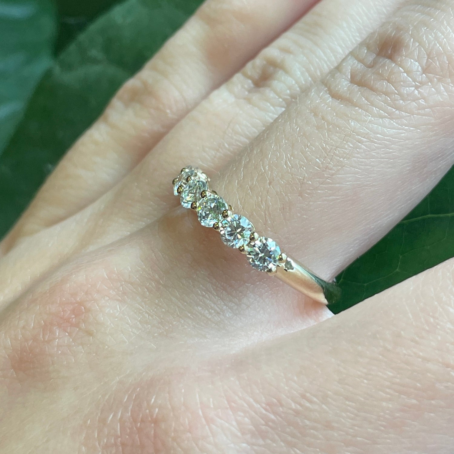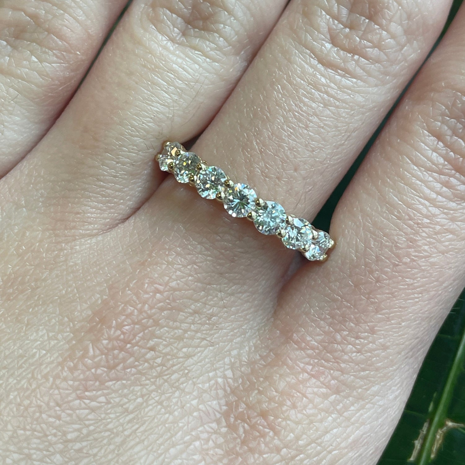 1 ctw lab diamond 7 stone ring in your choice of 14kt yellow or white gold. VVS- VS, D-F in color. This ring is a size 7 but can be resized if needed, just drop us a note at checkout for a quote!