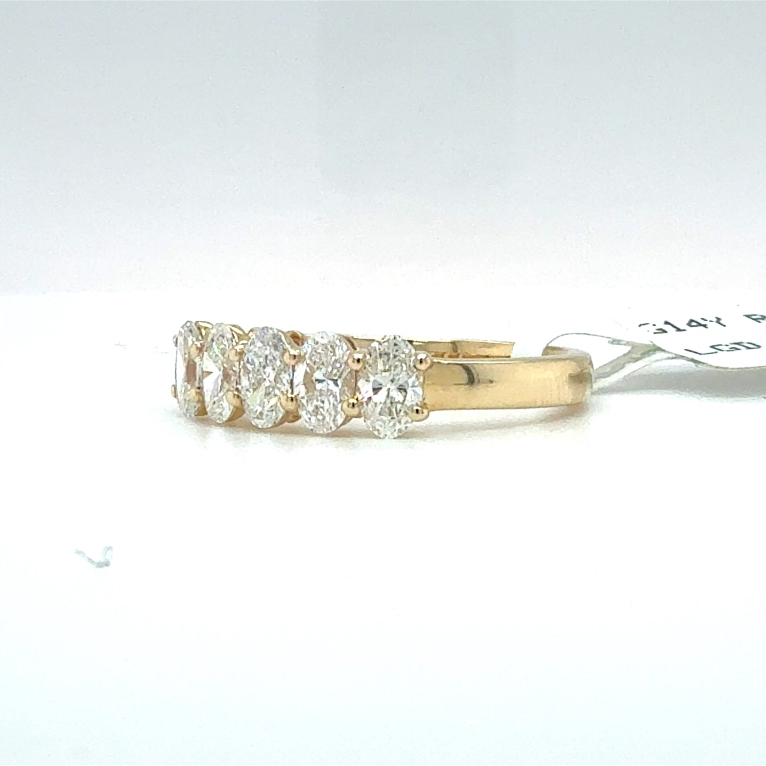Stunning 5 Stone 1 ctw or 2 ctw Lab diamond oval ring. The ring is 14Kt gold and is a size 7. This ring comes in your choice of 14kt yellow or white gold. This ring can be sized. Contact us for pricing on sizing
