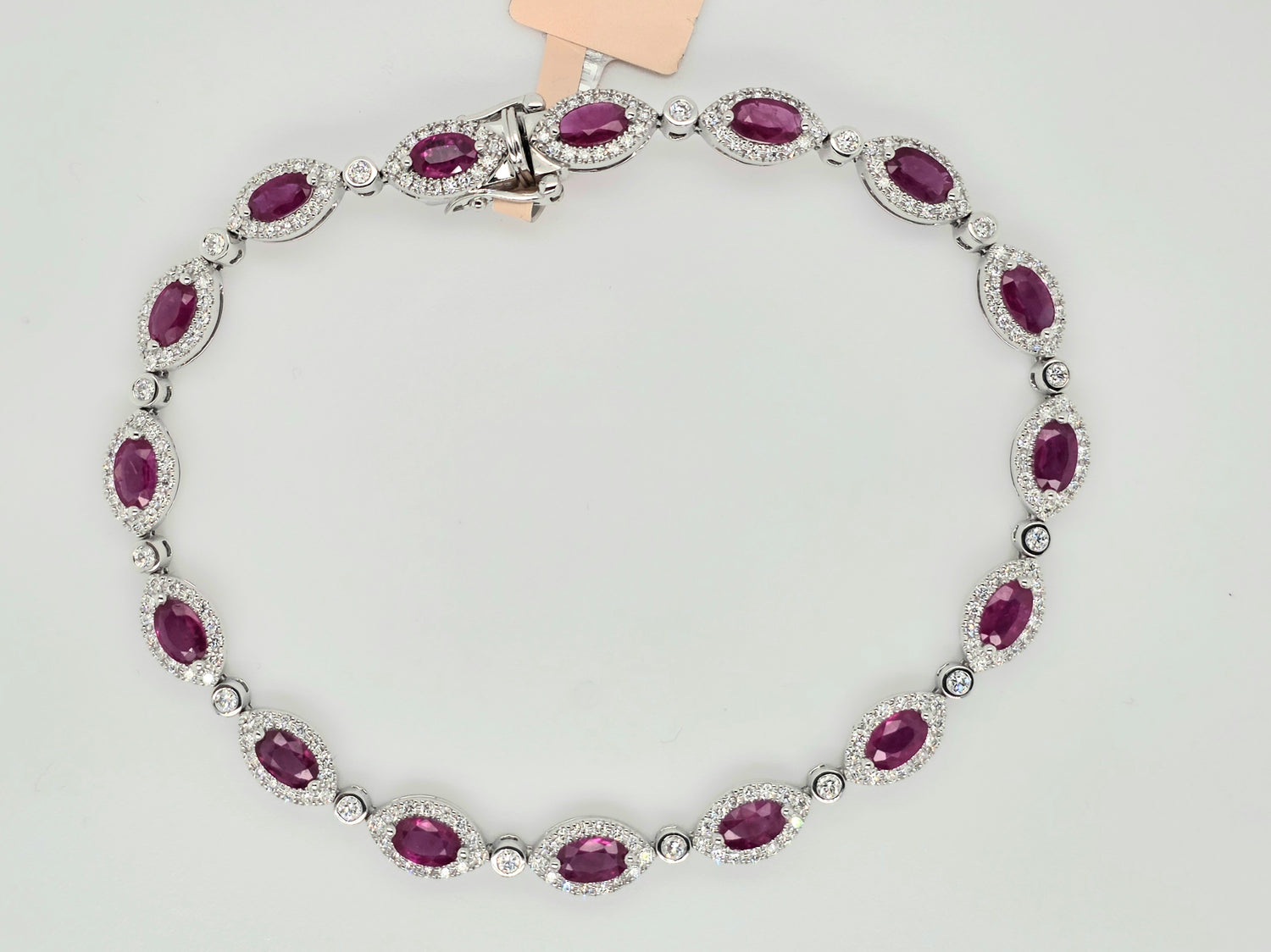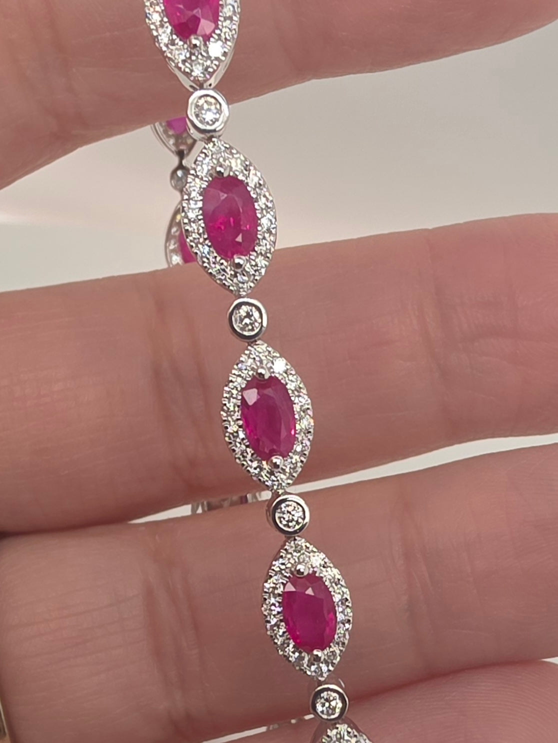18kt white gold 1.17ctw natural diamonds & 3.88ctw natural ruby bracelet 7inches