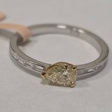 .38ct Natural Yellow Diamond ring & .17ctw natural white diamond accents in 18kt white gold and yellow gold bezel around yellow diamond. Size 7 can be sized just let us know the size and we can quote a price on sizing.