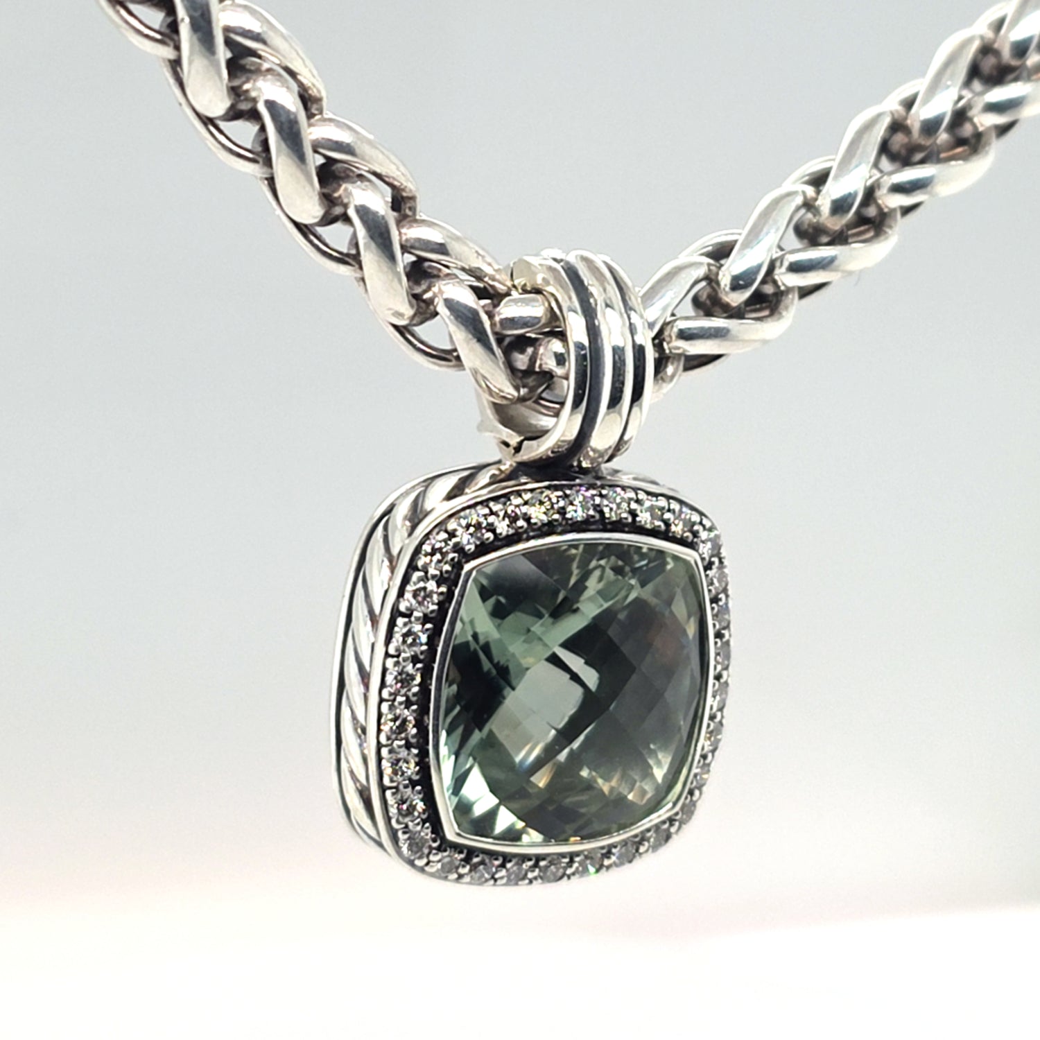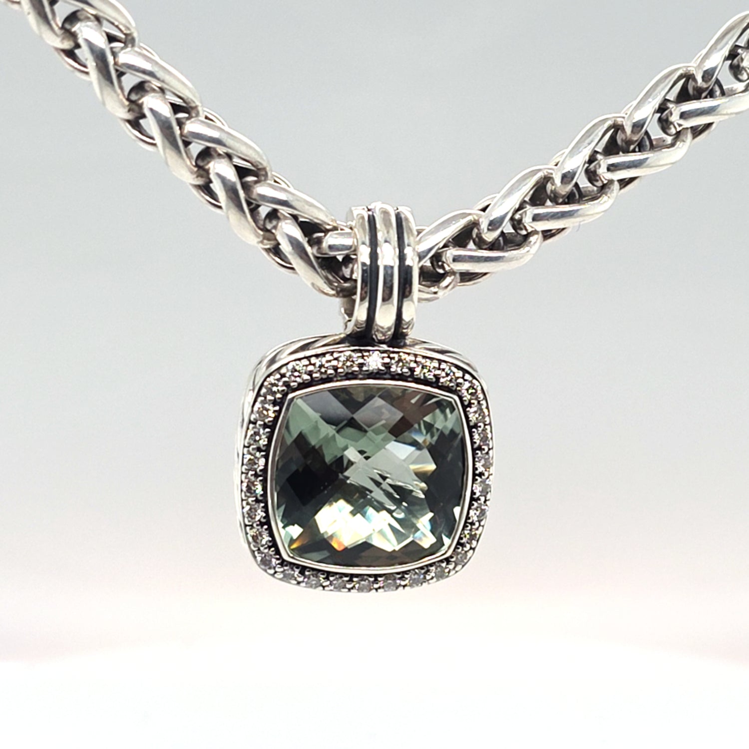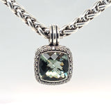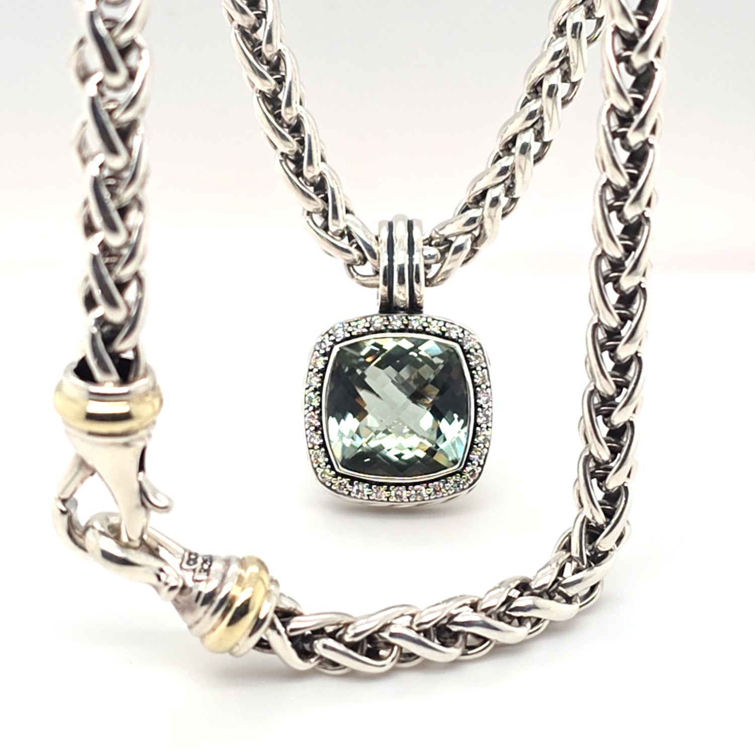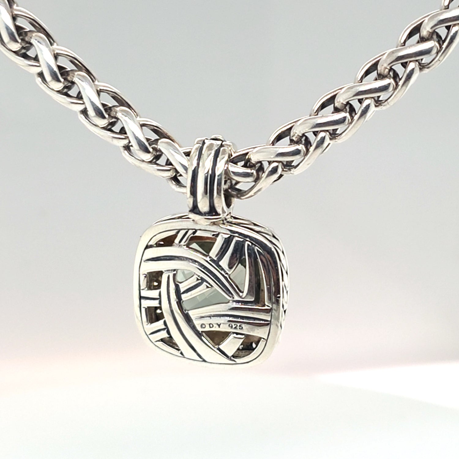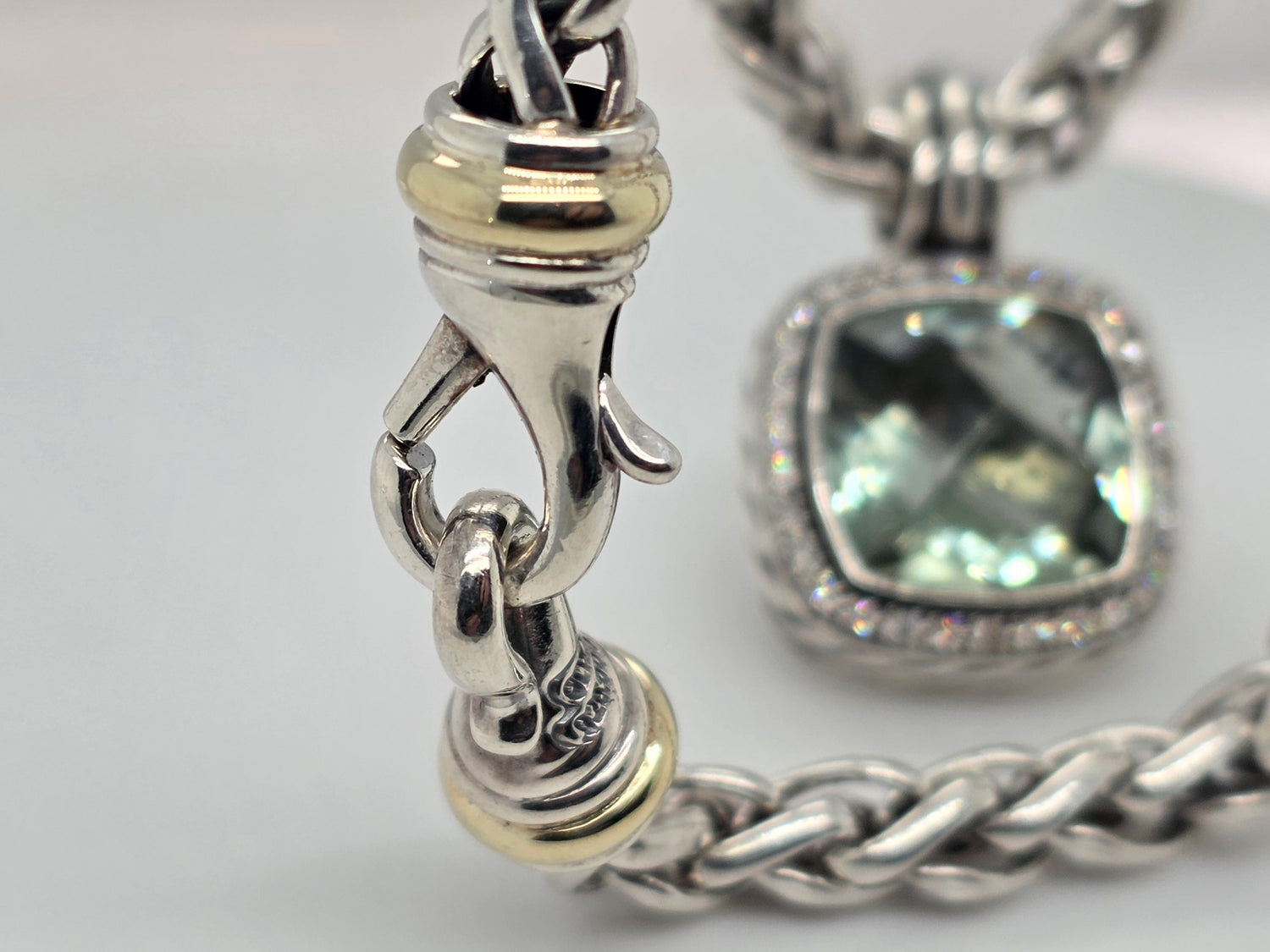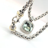 David Yurman moonlight series sterling silver prasiolite pendent & 16in sterling silver & 14kt accent chain