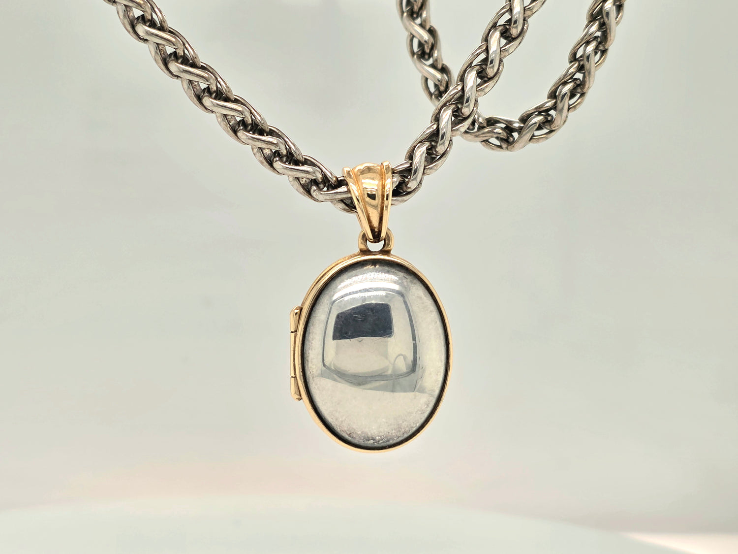 James Avery 24in sterling silver & 14kt gold locket pendant