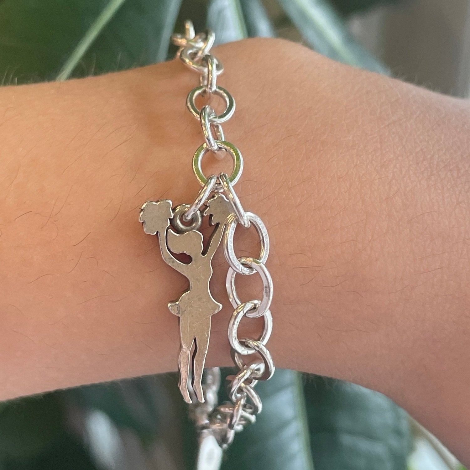 Sterling Silver cheerleader charm bracelet made by James Avery. 7in long.