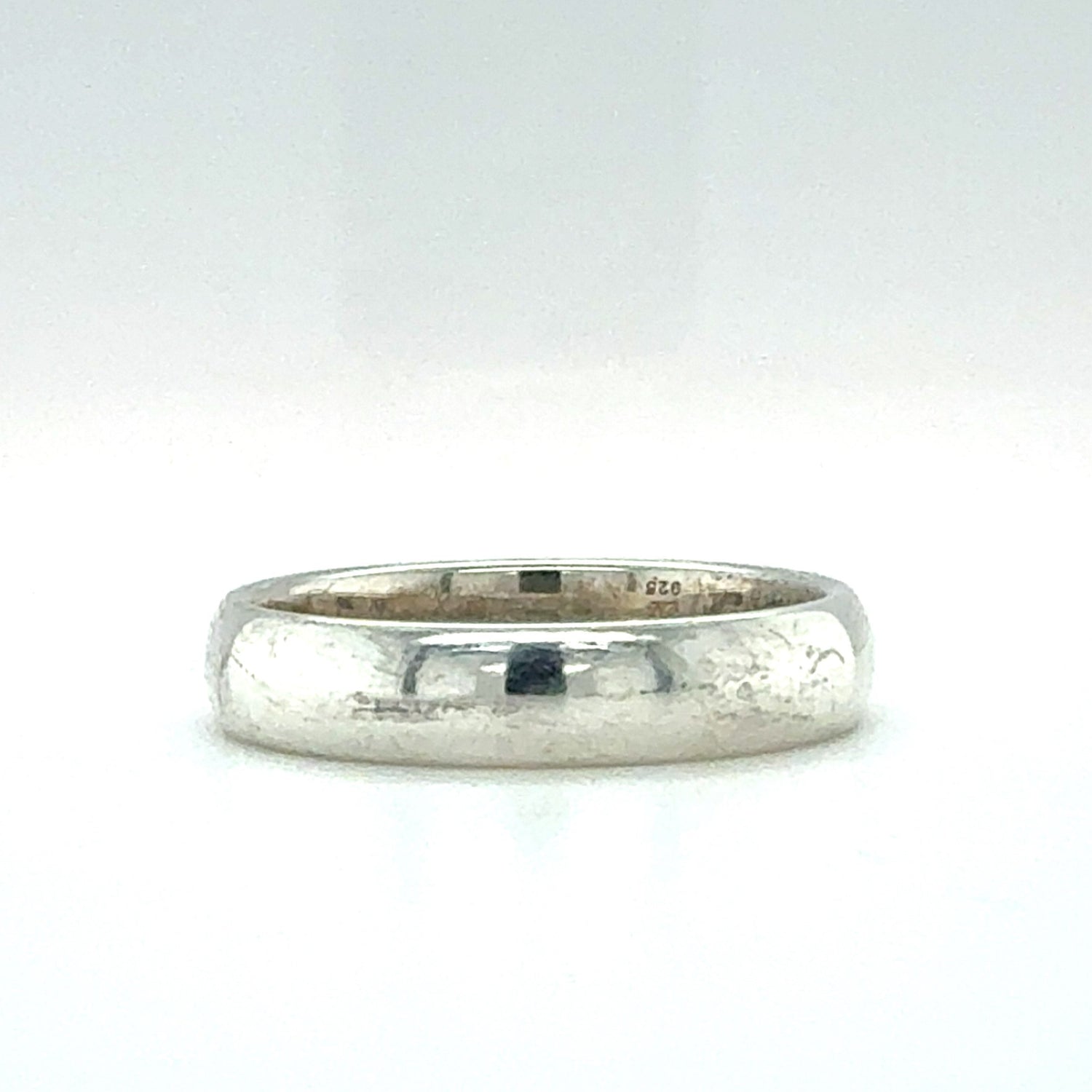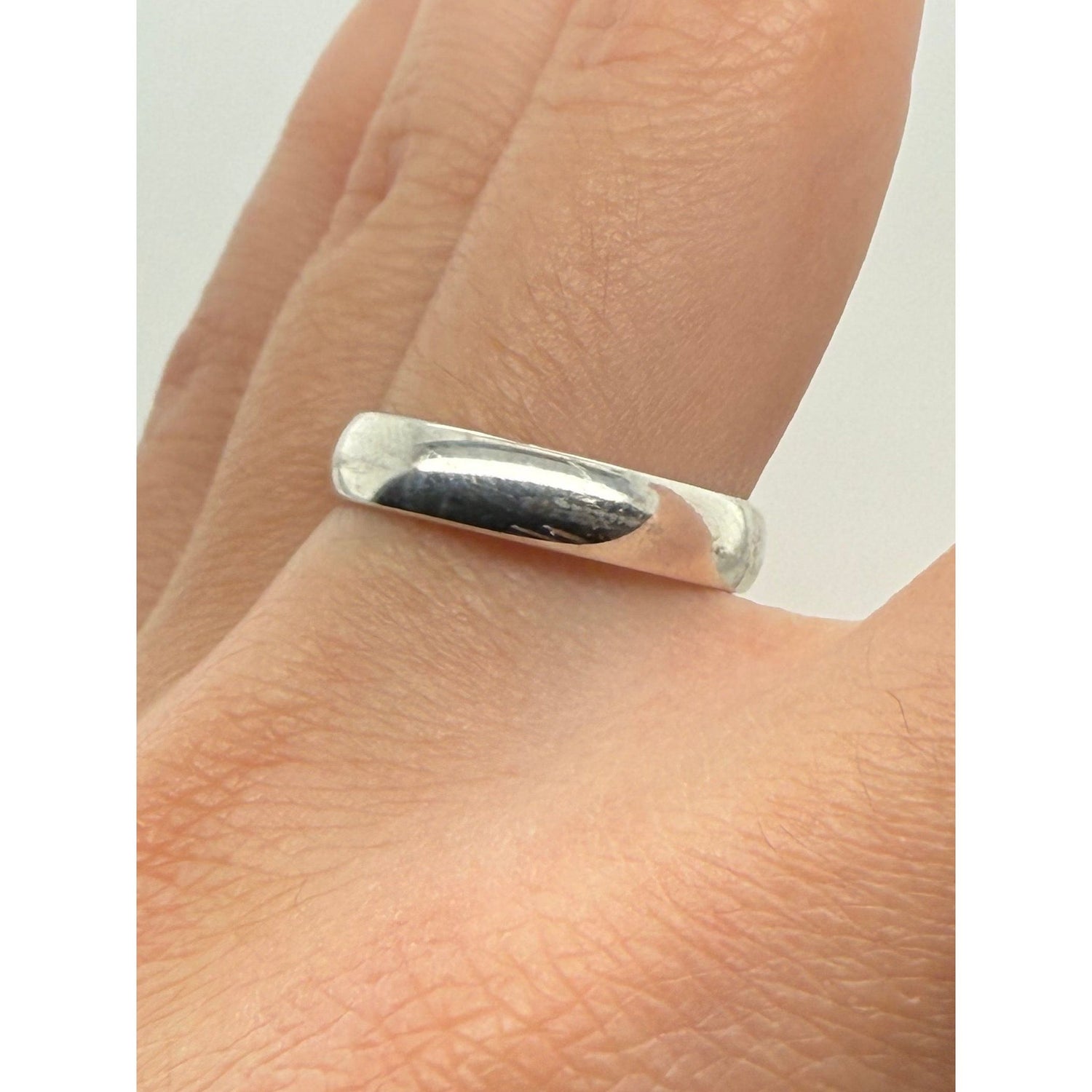 Sterling Silver small solid wedding band made by James Avery. 4mm wide. This ring is a size 6.25!