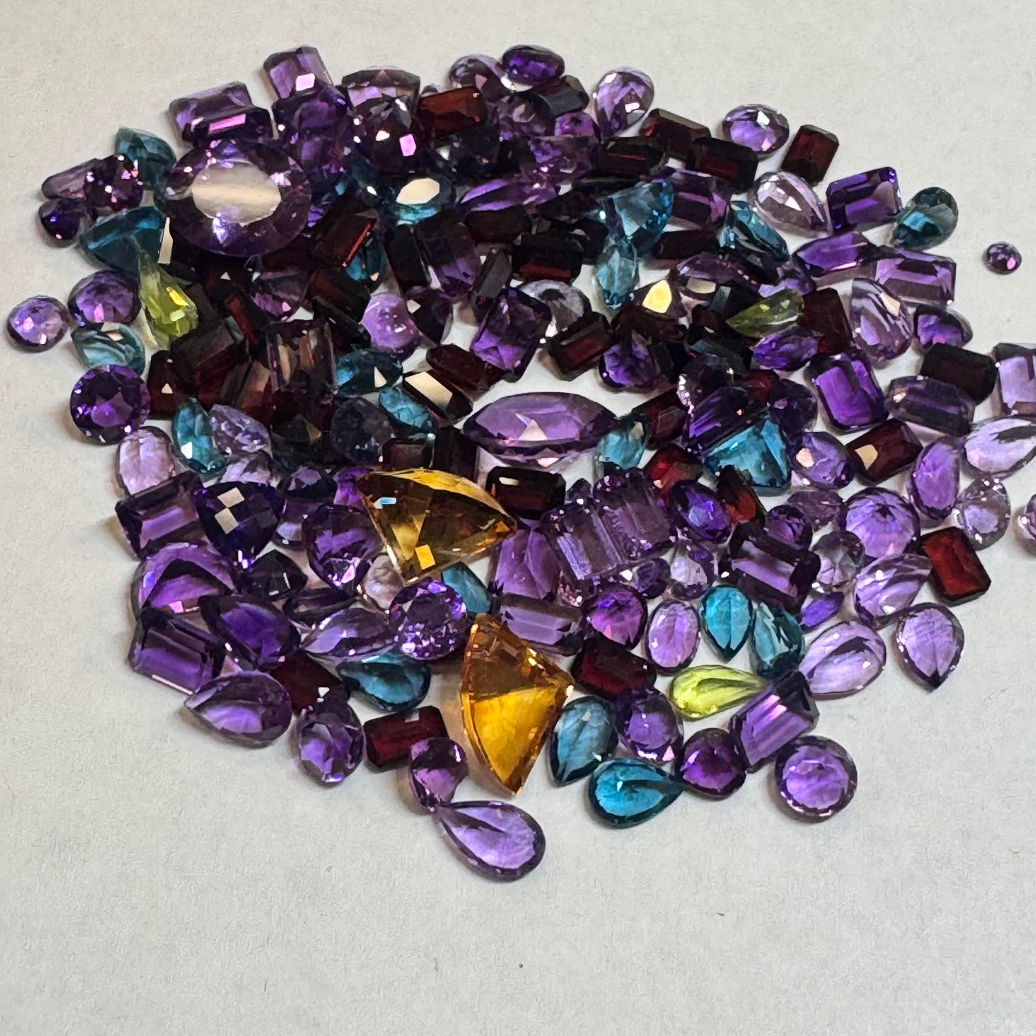 Amethyst topaz and garnet mixed lot different sizes and cuts all lots are 150 carat total weight
