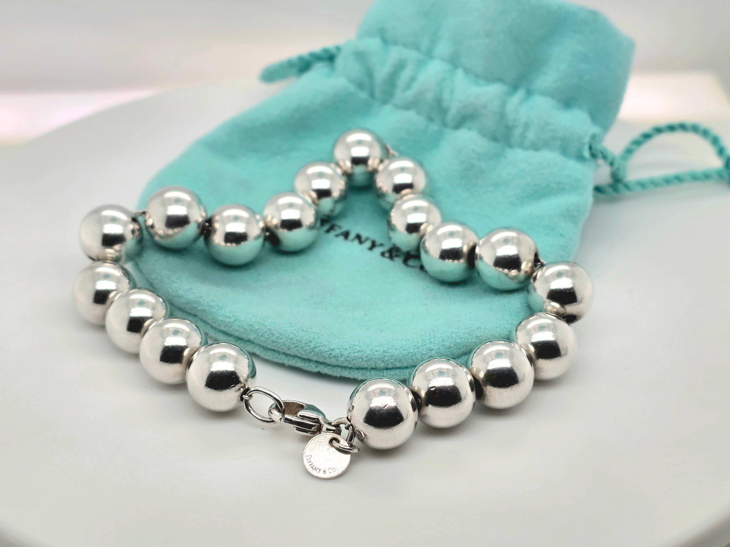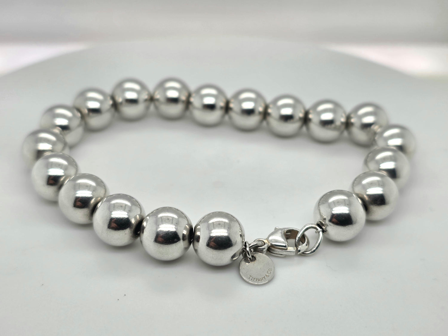 Tiffany & co 10mm beaded sterling silver bracelet 8in