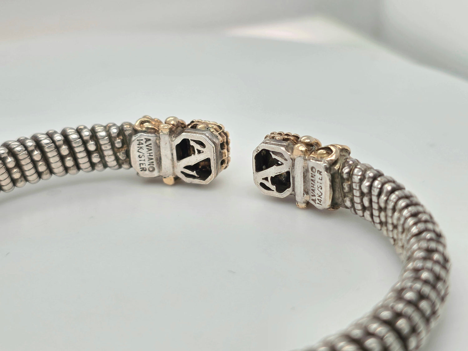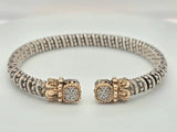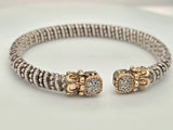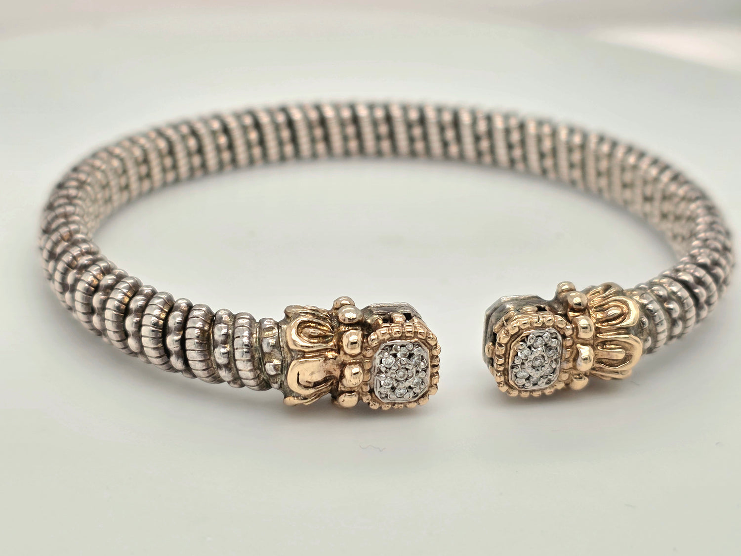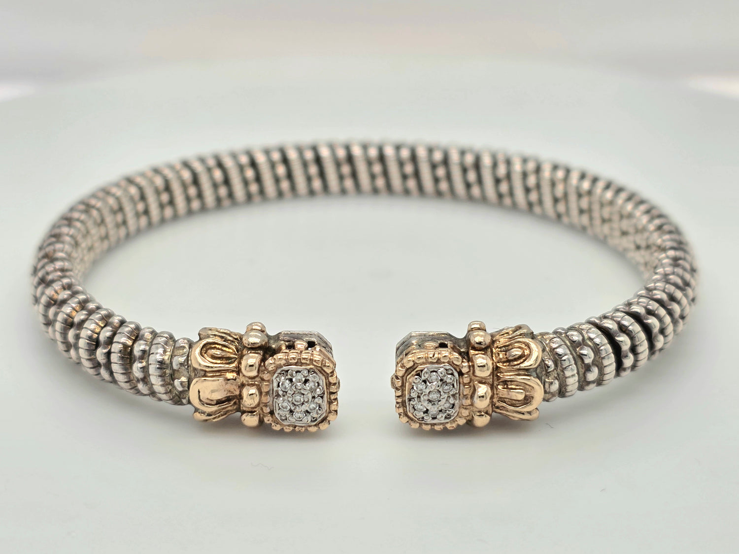 Vahan 14kt gold & sterling silver diamond cuff bracelet square end 6.25mm wide