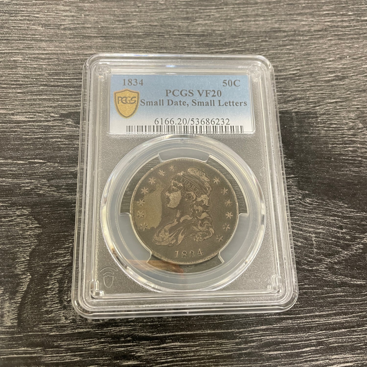 1834 VF20 graded half dollar small letter coin. Graded By PCGS.