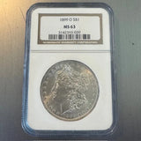 This 1899-O Morgan Silver Dollar is graded MS63 by NGC.