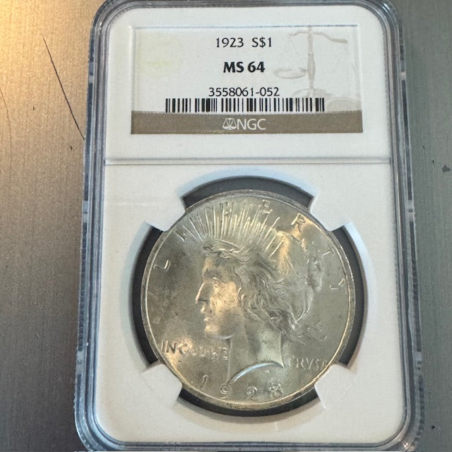 1923 Philadelphia Mint Peace Dollar MS 64 Graded by NGC