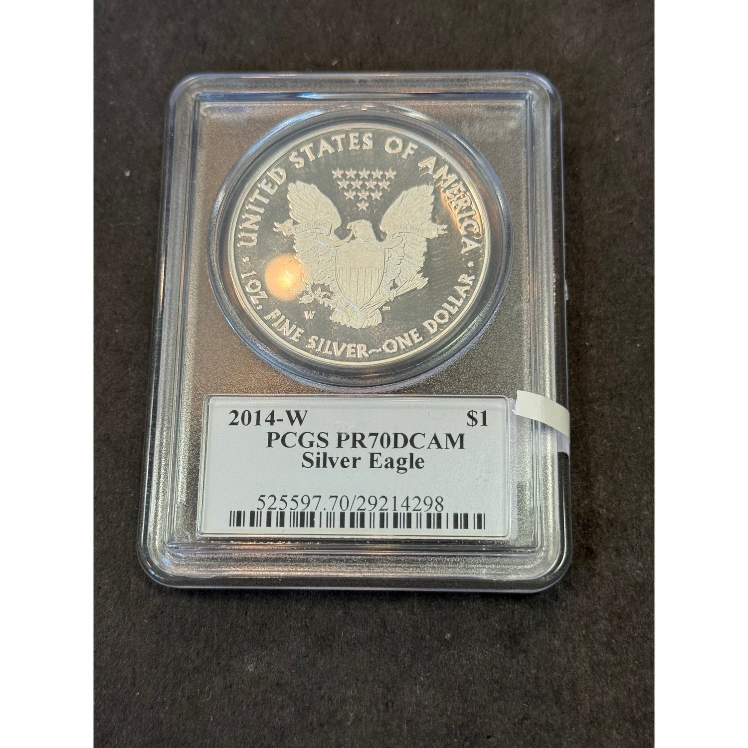 2014 W American Silver Eagle PR 70 DCAM $1 Coin Graded By PCGS