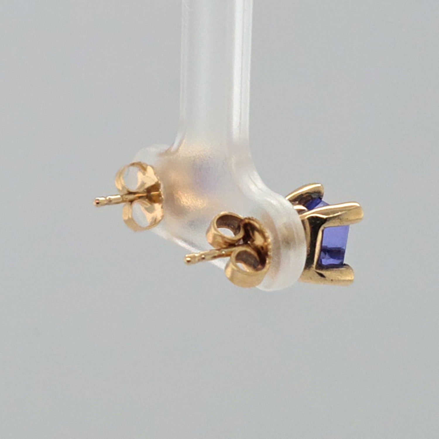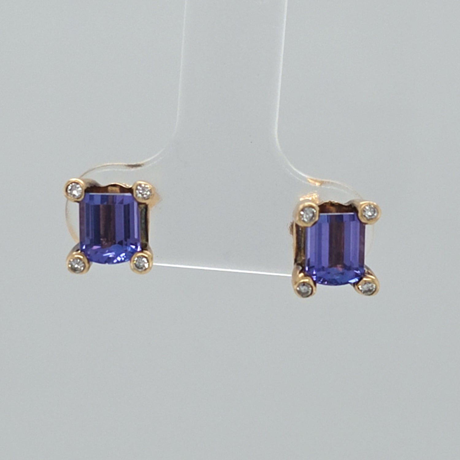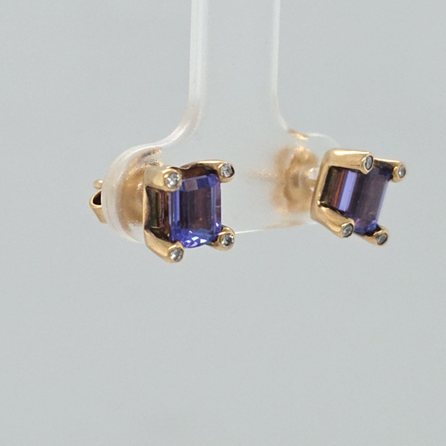 2 Ctw Tanzanite & natural Diamond accents set in 14kt yellow gols stud earring settings.