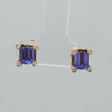 2 Ctw Tanzanite & Natural Diamond Stud Earrings In 14Kt Yellow Gold