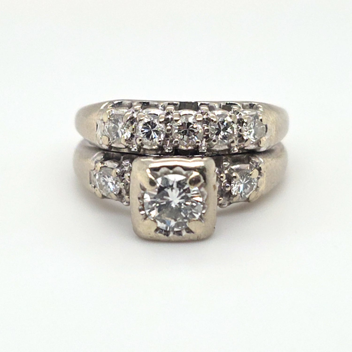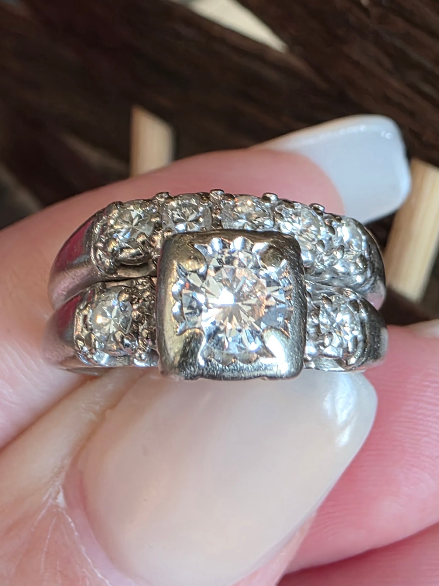 0.90 Ctw natural Diamond Hi Lock ring set in 14kt white gold. Sauntered together. This ring is a size 6 1/4 but can be resized if needed, just drop us a note at checkout for a quote!