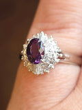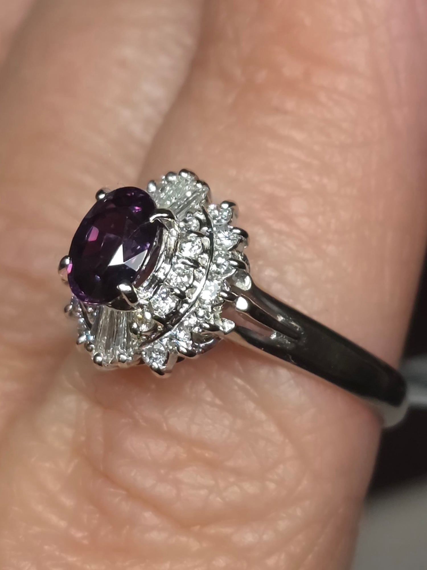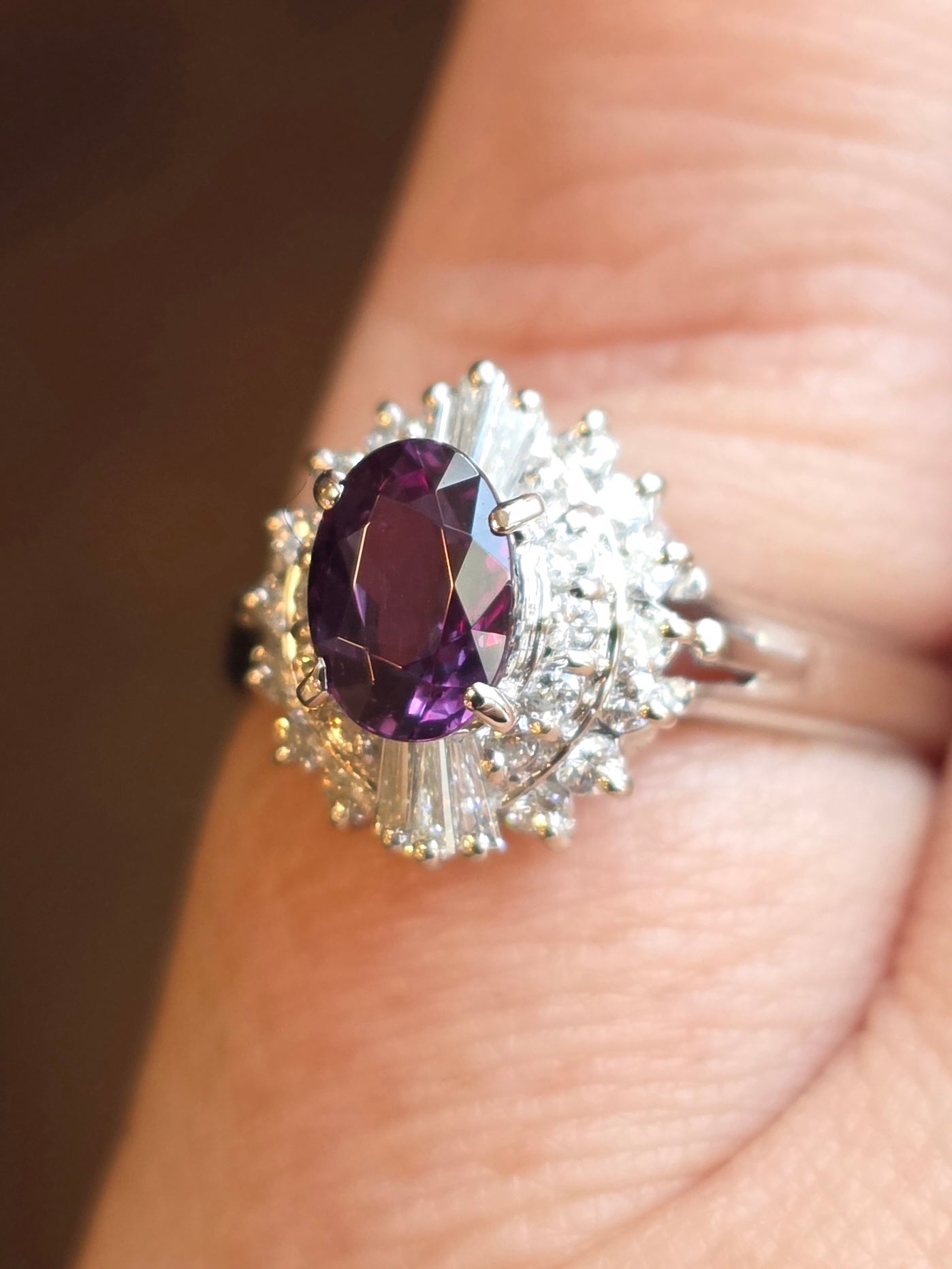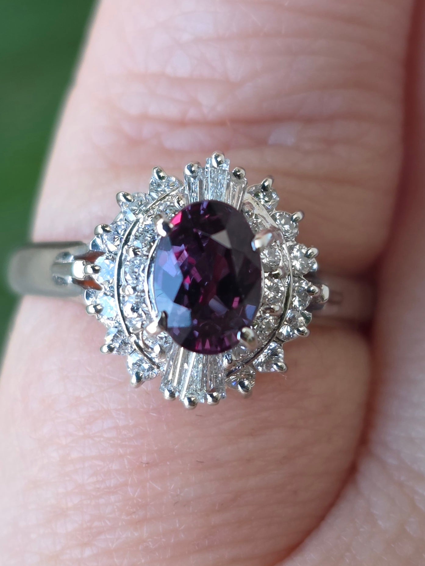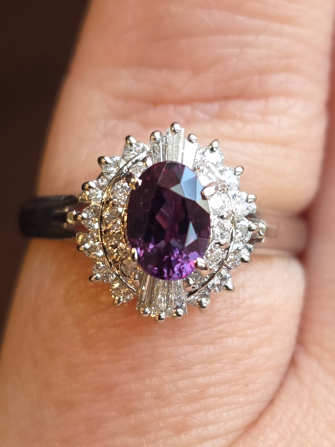 1.02 Ct Color Changing Garnet & Natural Diamond Ring In Platinum