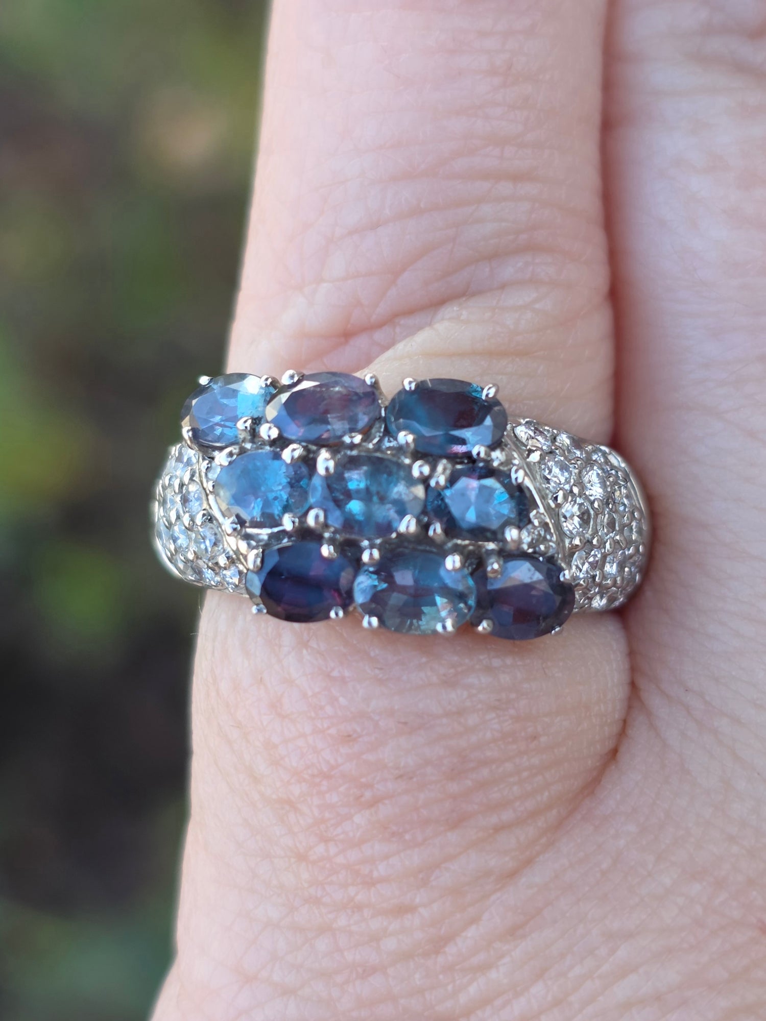 2.01 Ctw natural Alexandrite & 1/2 Ctw natural Diamond ring set in Platinum. This ring is a size 6 but can be resized if needed, just drop us a note at checkout for a quote!