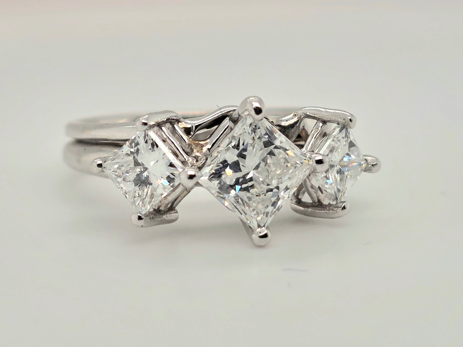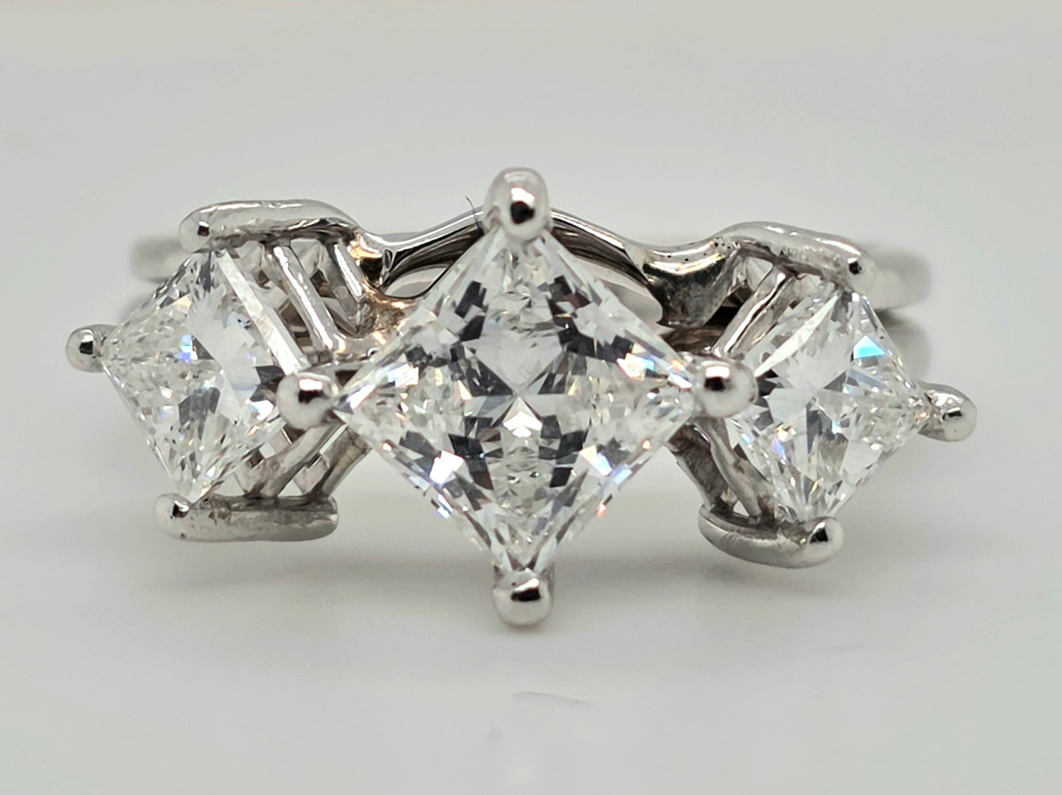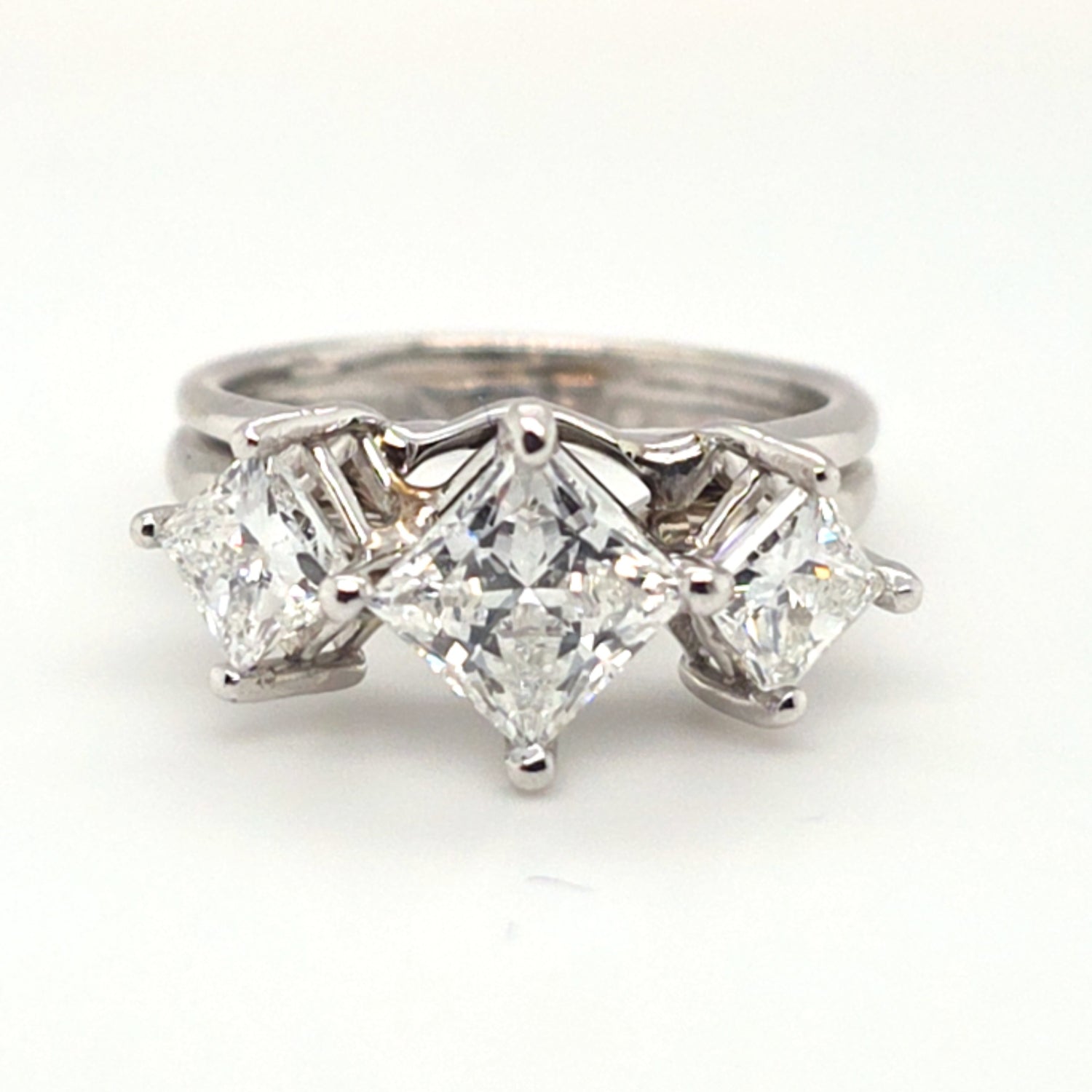 2.24ctw Natural 3 stone princess cut diamond ring Platinum & 14kt white gold ring