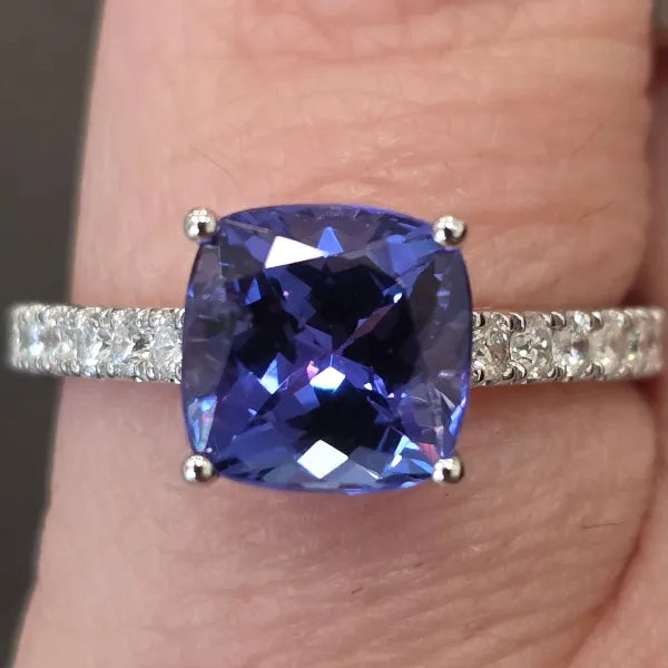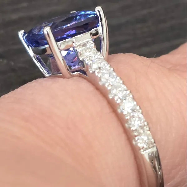 2.63ct Tanzanite & .33ctw nat diamond ring in 18kt white gold