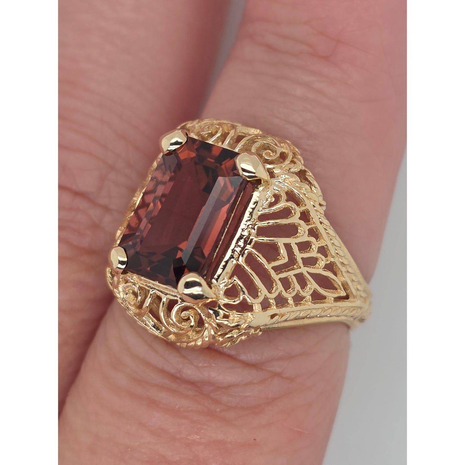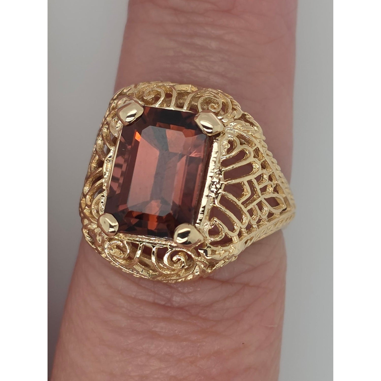 4 Ct Rubellite Tourmaline set in 14kt yellow gold cut-out ring setting. 5g total weight. This ring is a size 6 but can be resized if needed, just drop us a note at checkout for a quote!