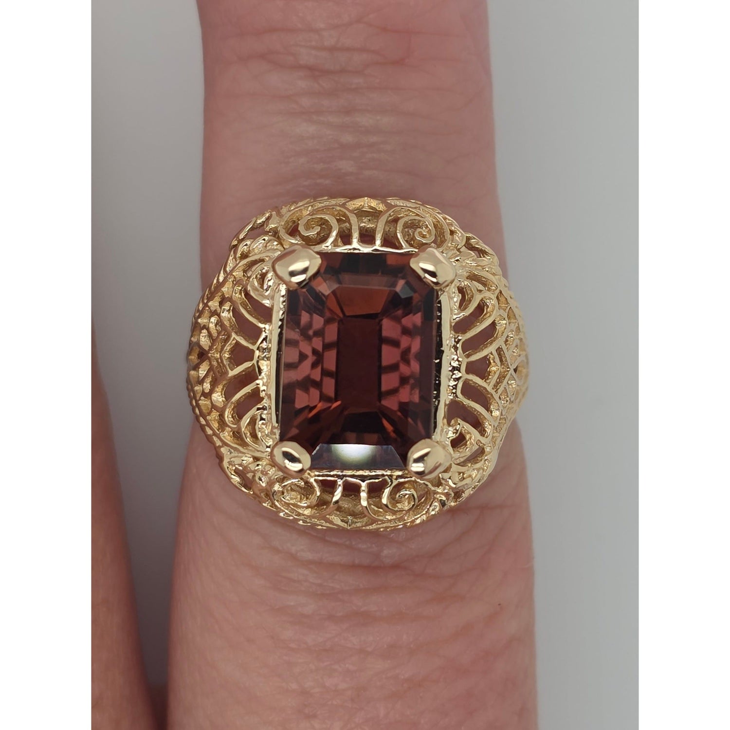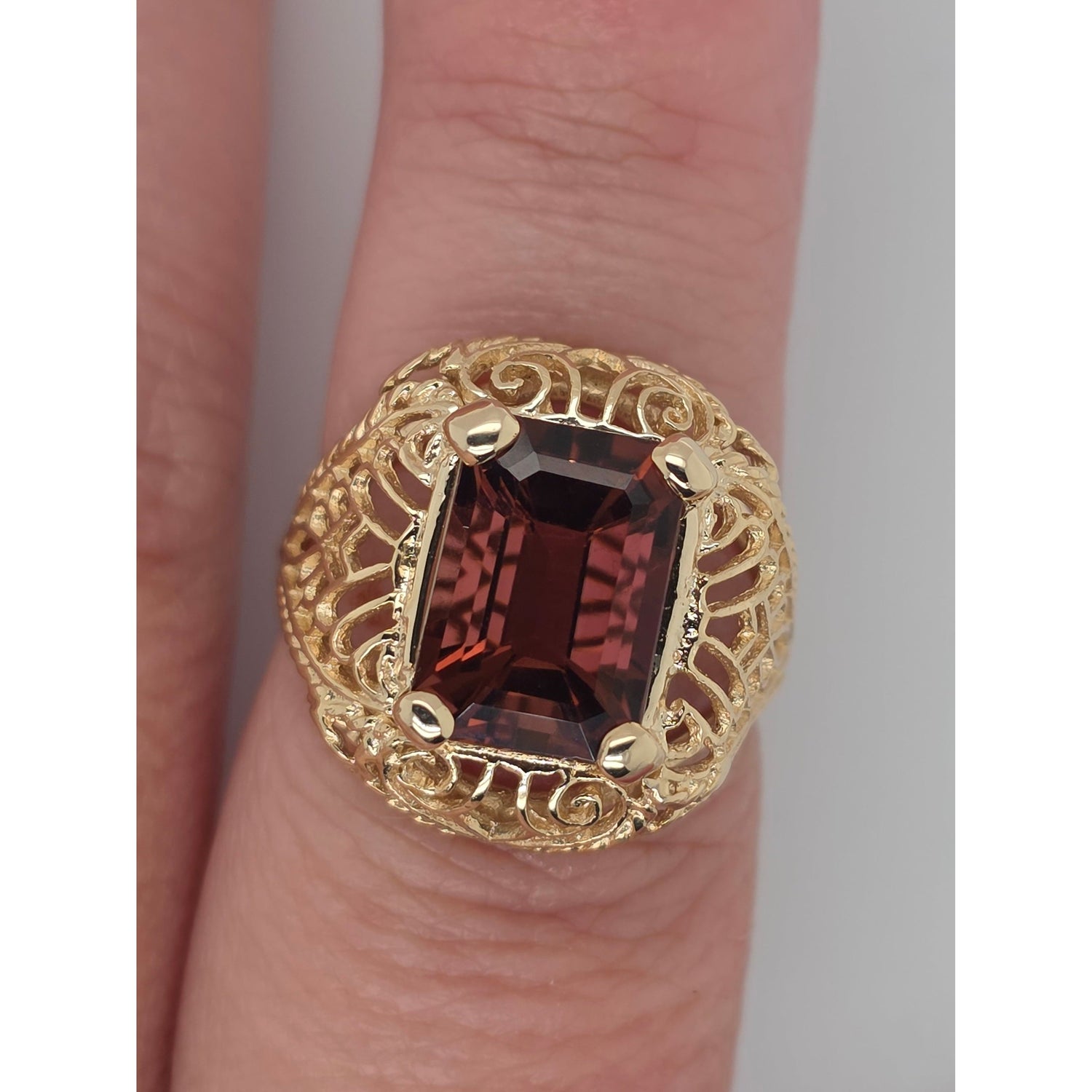 4 Ct Rubellite Tourmaline & 14Kt Yellow Gold Cut Out Ring