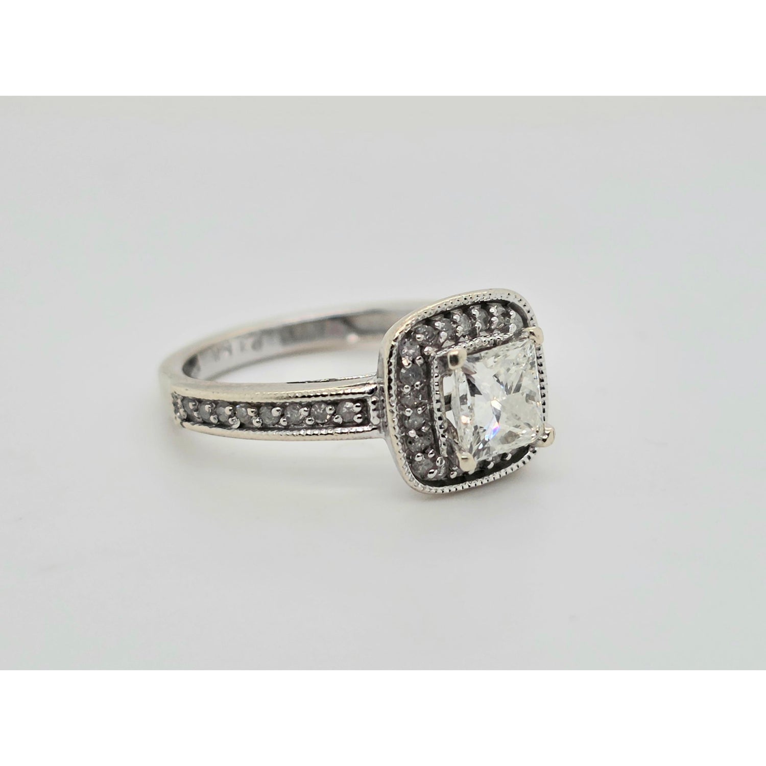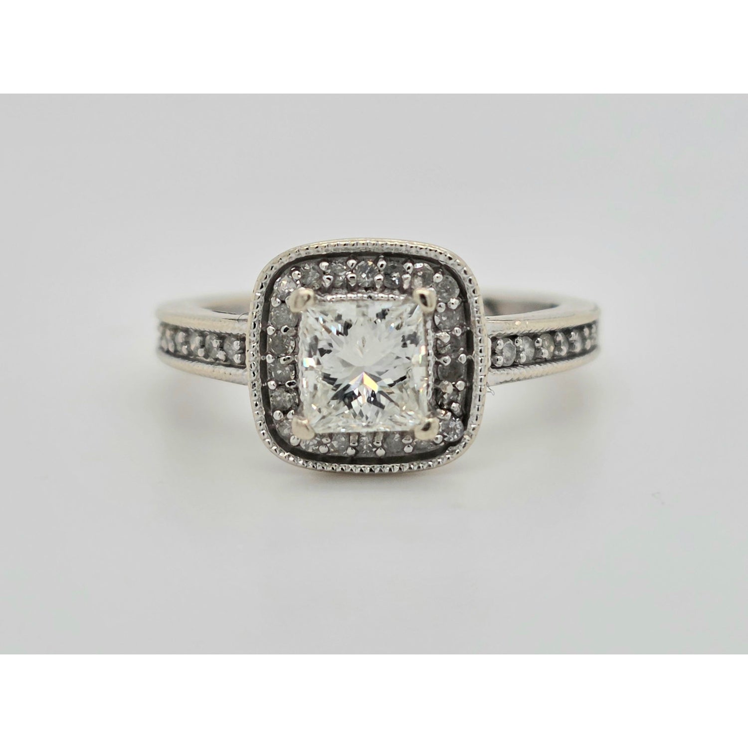 Estate 1 CT Diamond Ring With Princess Cut Center In 14Kt White Gold