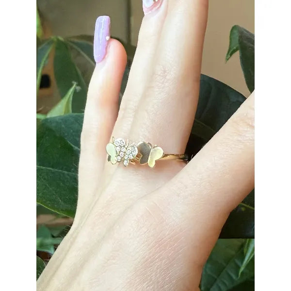 Natural Diamond & Your Choice of 14Kt White or Yellow Gold Butterfly Articulated Ring