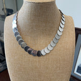 Sterling silver chain, each disk is 17 MM in size and the necklace is 16 inches long with 93 grams of weight