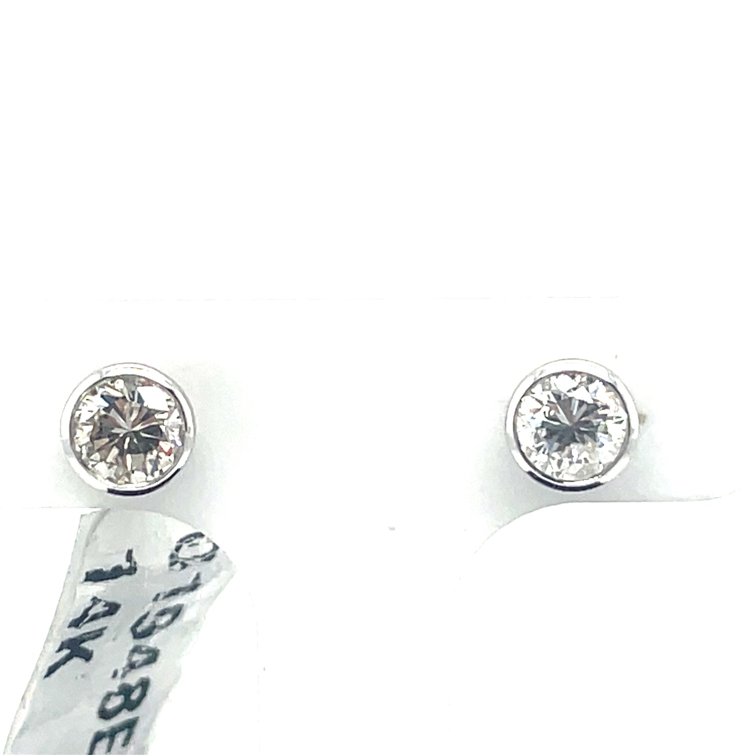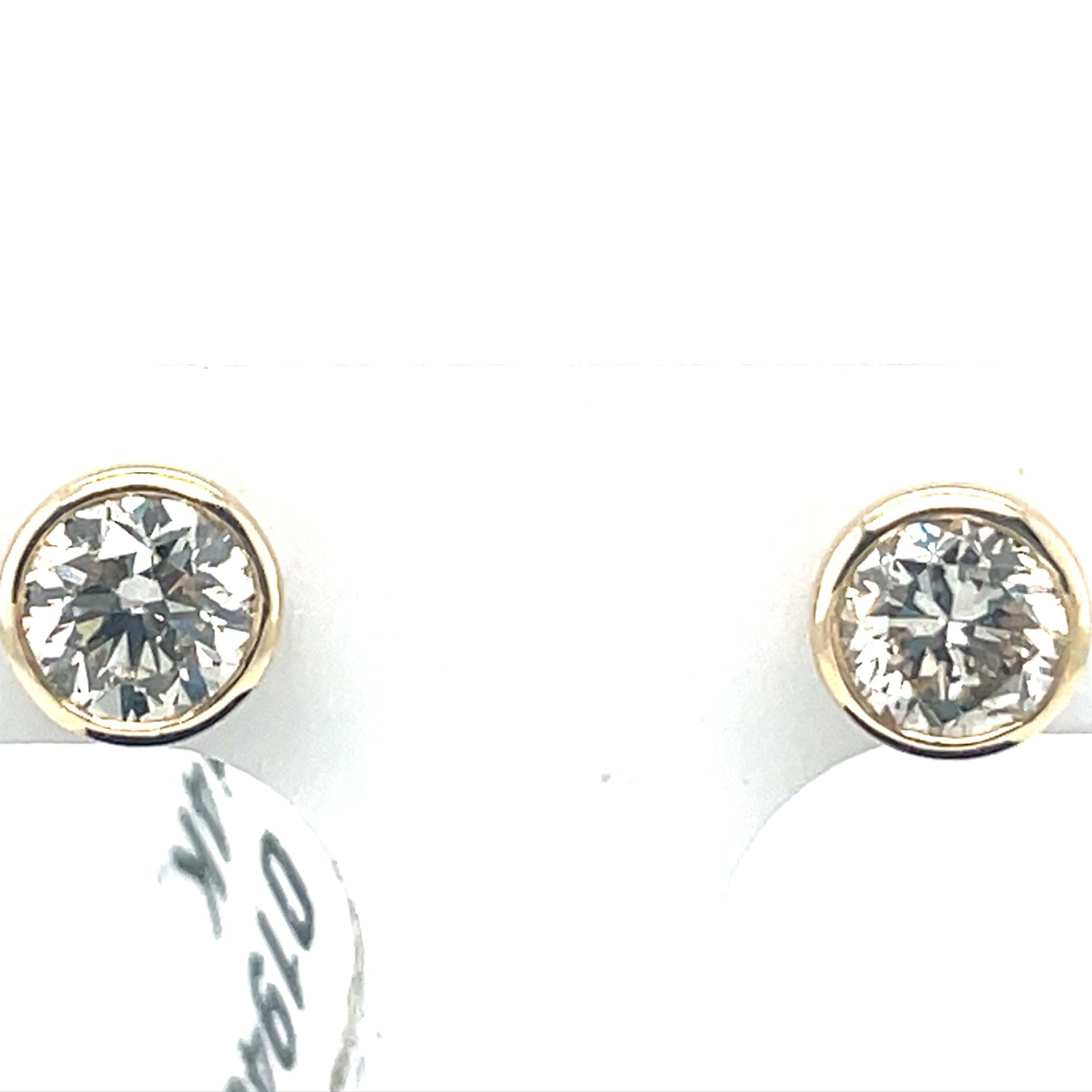 1.05 Ctw Natural Bezzle Set Diamond Earrings with Choice of Yellow or White 14k Gold
