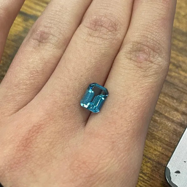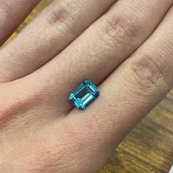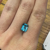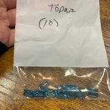 This lot includes ten natural American Blue Topaz gemstones, each precisely faceted in a classic 8 × 6 mm emerald cut.