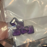A lot of five amethyst stones, each 12×10 mm and emerald-cut, showcasing rich purple color and clean, well-defined facets.