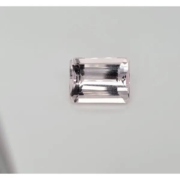 A 17.9 CT natural morganite, emerald-cut, measuring 18.4 × 13.8 mm, showcasing soft peach-pink color and excellent clarity.