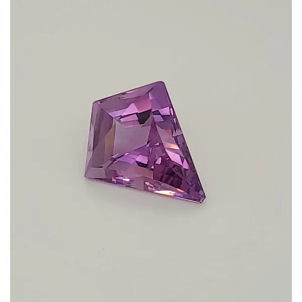 A 25.6 CT loose amethyst, cool kite-shaped, measuring 26 × 21.5 × 13.64 mm, featuring rich purple color and excellent clarity with a unique, eye-catching cut.