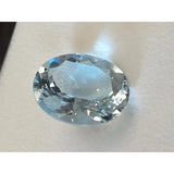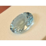 A 3.50 CT oval-cut aquamarine, measuring 12×10 mm, featuring a bright, clear blue hue and excellent clarity.