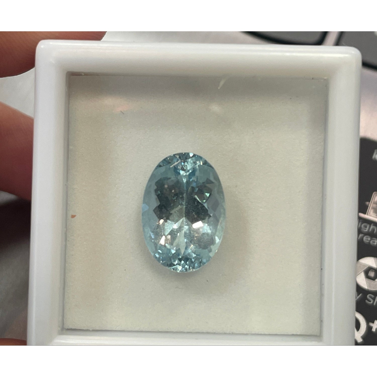 1 stone 4.75 Ctw oval cut Aquamarine. 14x10mm wide. 1 available!