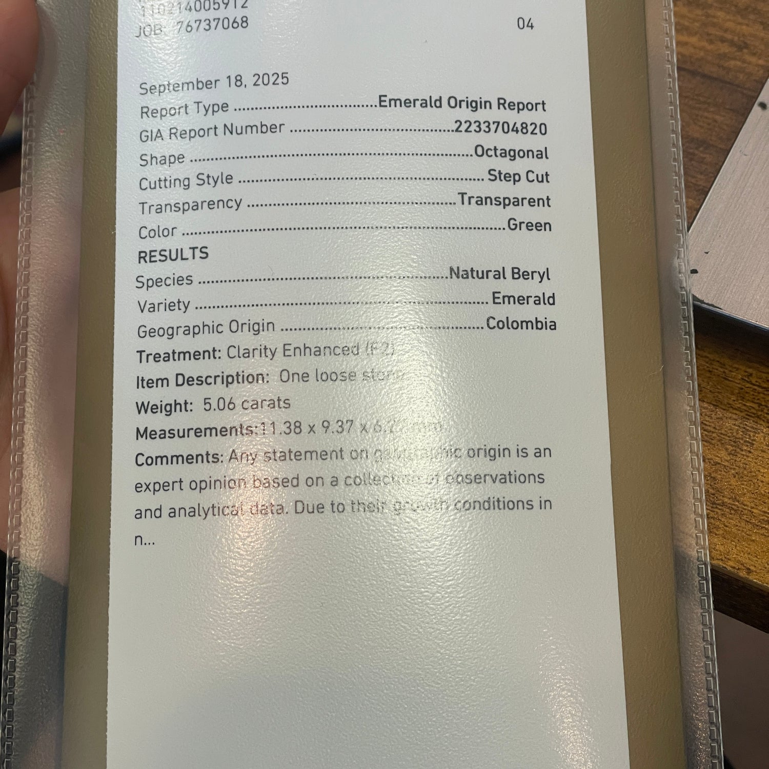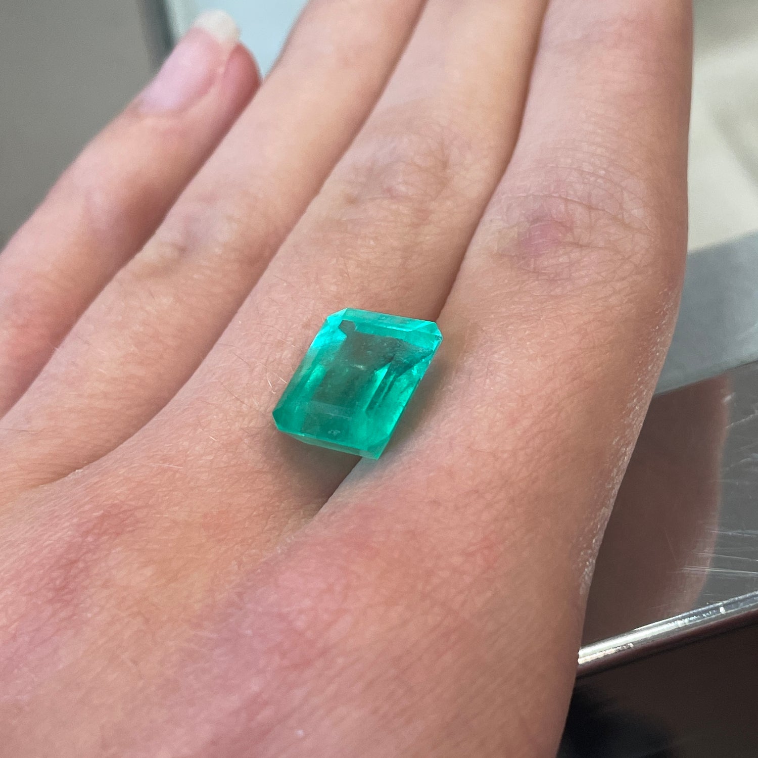 5.06 Ct step cut loose Colombian Emerald. 1 available.