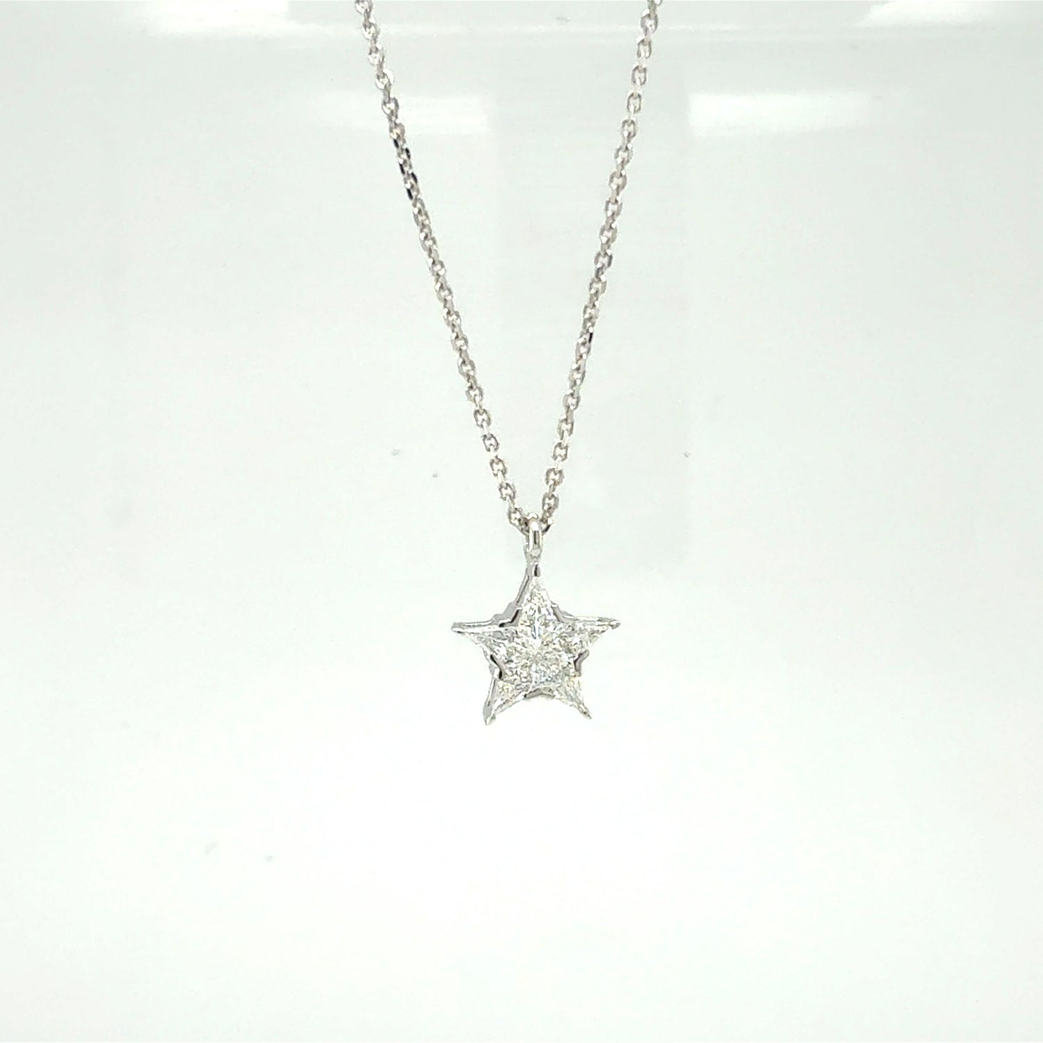 1/4 Ctw LAB Diamond star pendant in your choice of 14kt yellow or white gold. 17in long chain.