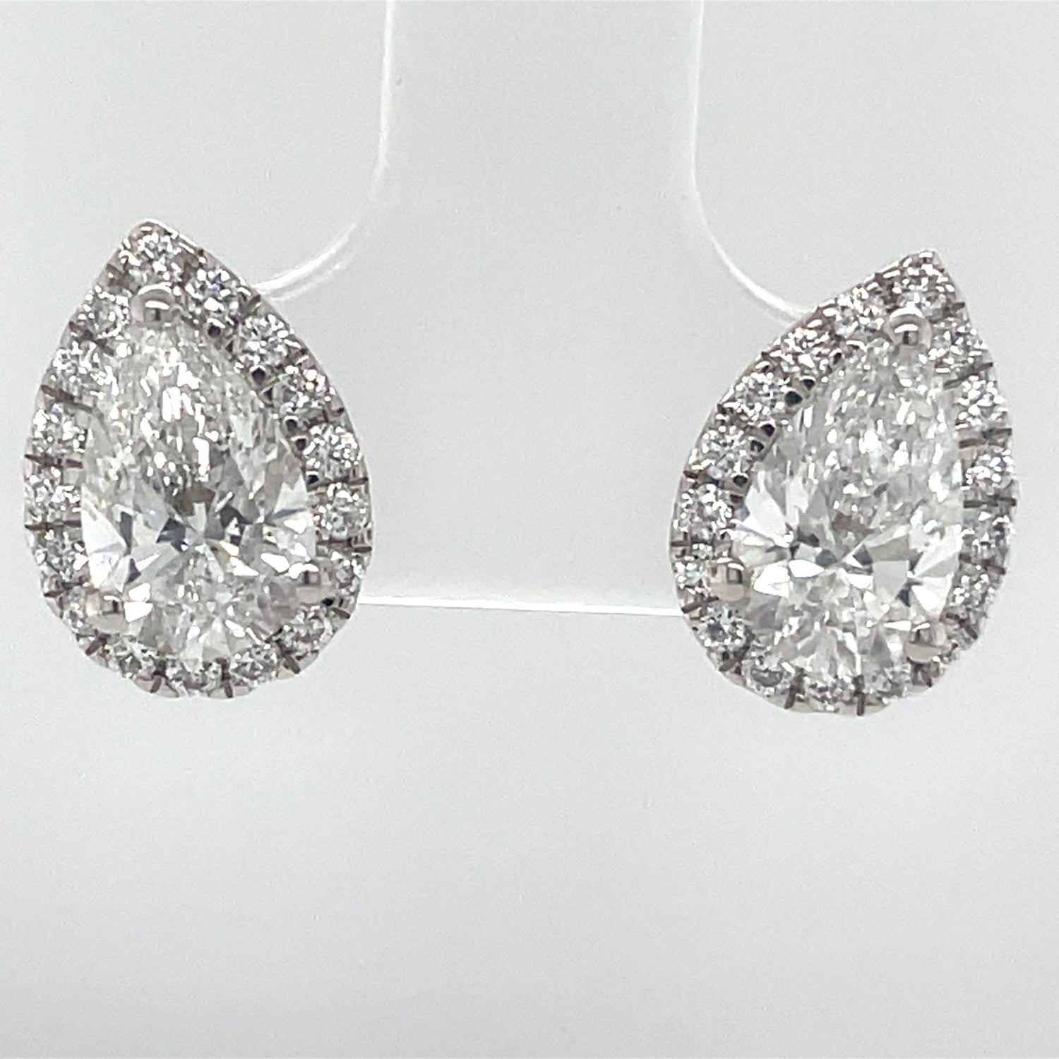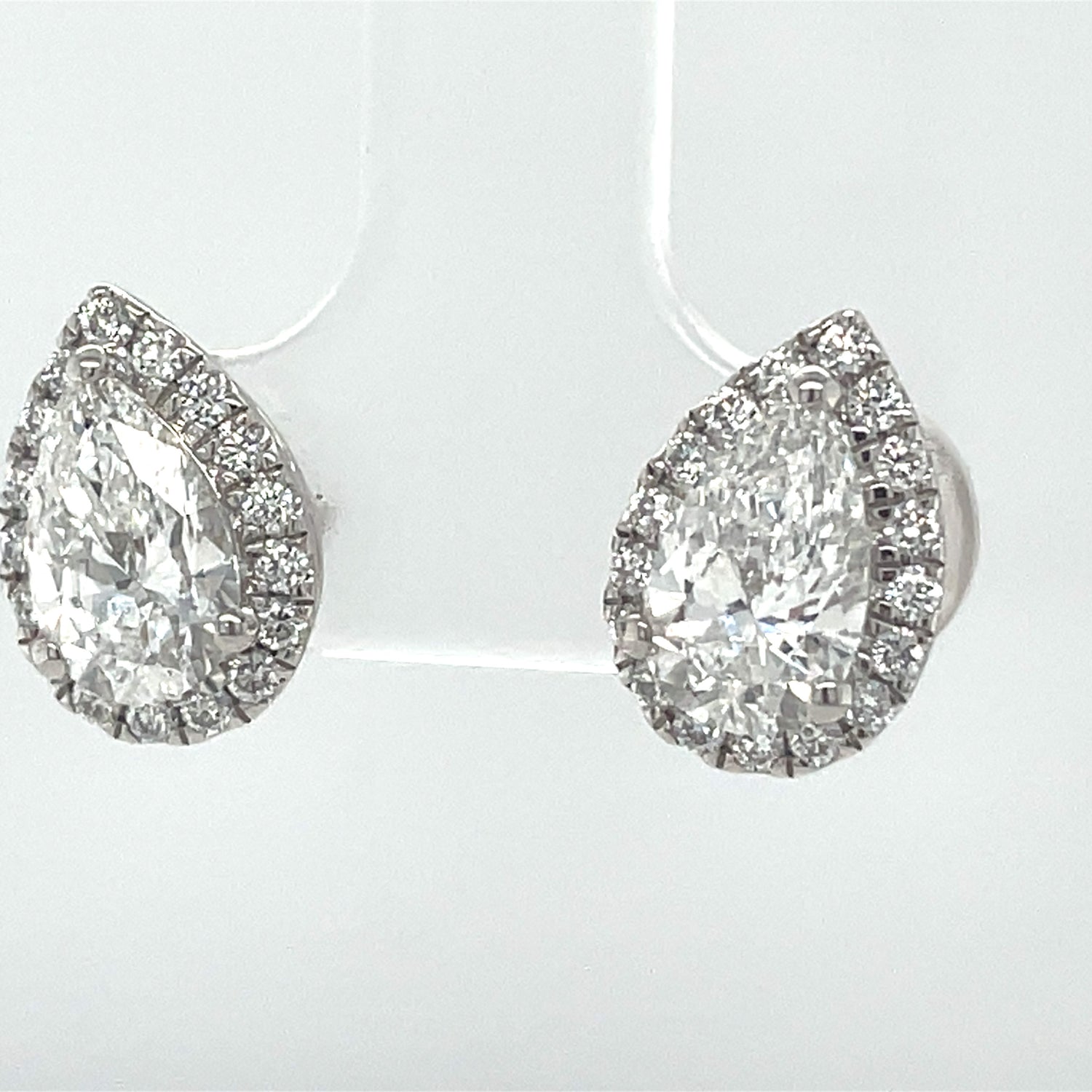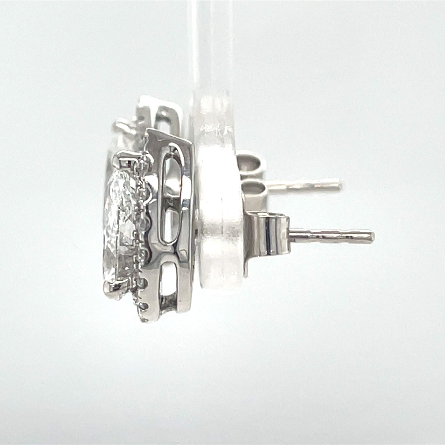 2.25 Ct Center Lab Diamond & 0.18 Ctw LAB diamond halo accents in 14kt white gold earring settings.