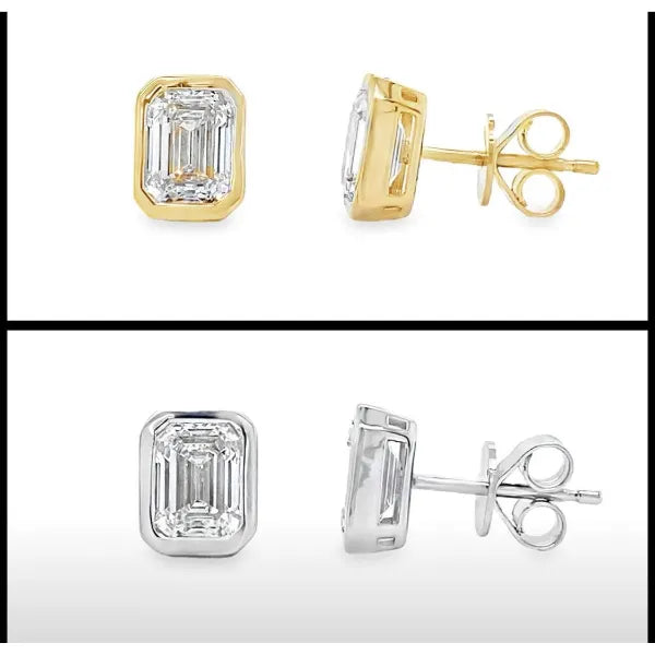 2 Ctw Bezel set Emerald Cut Lab Diamond Earrings