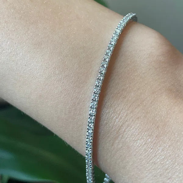 This stunning 2 Ctw lab-grown diamond tennis bracelet is crafted in 14kt white gold and measures 7 inches in length. The bracelet features a continuous line of sparkling lab diamonds, offering an elegant and timeless design perfect for any occasion.