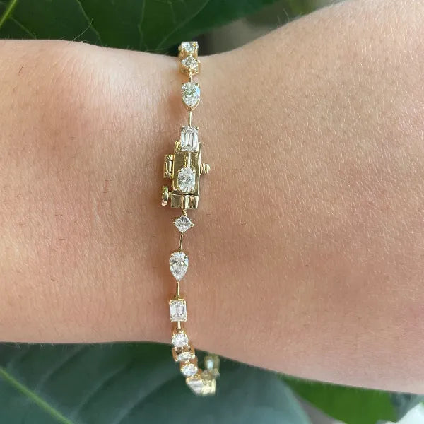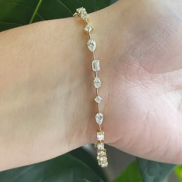 3 Ctw Lab Diamond Mulit-Shaped Tennis Bracelet in 14Kt Yellow or White gold