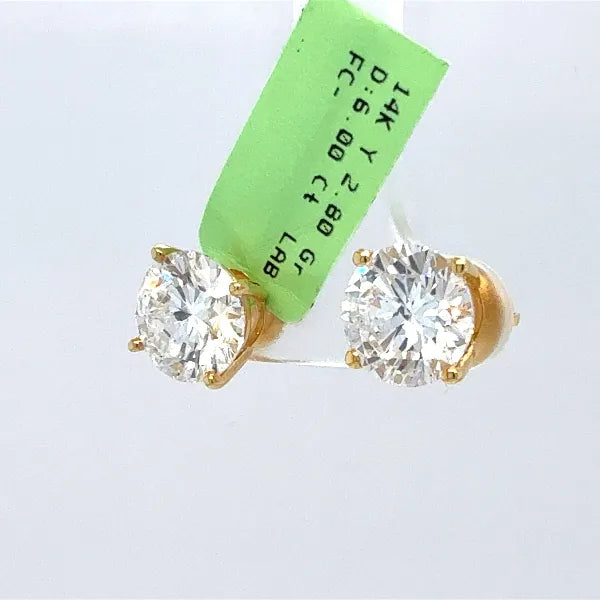 These dazzling 5ctw lab-grown diamond stud earrings feature diamonds in the D-E-F color range and VS+ clarity, offering exceptional brilliance and fire. Set in sleek 14kt yellow gold with secure screwback closures, they provide both luxury and comfort, making them the perfect pair for everyday elegance or special occasions.