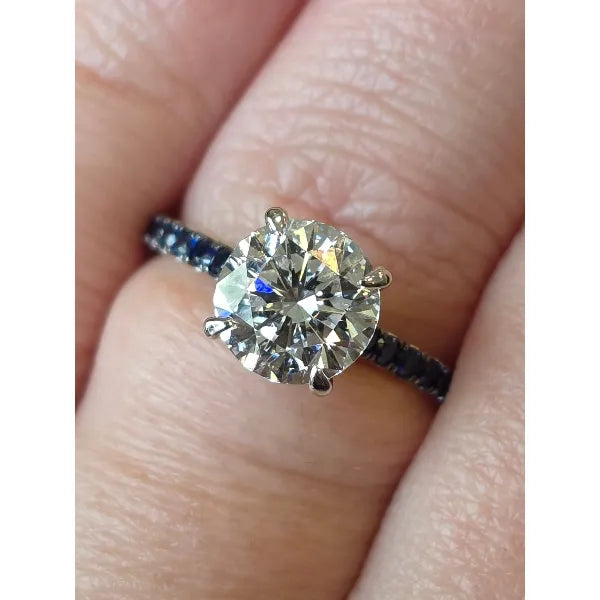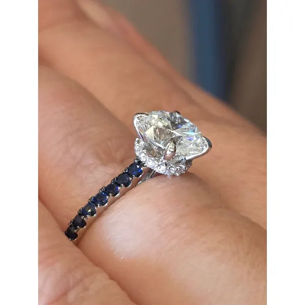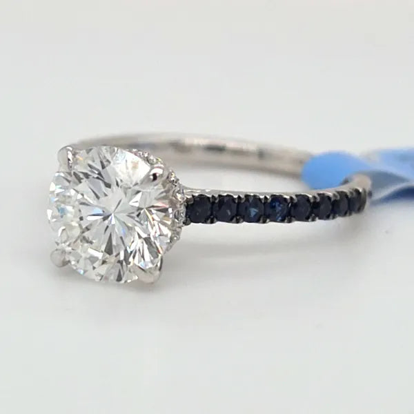 2 Ctw LAB Diamond ring & natural Sapphire accents in 14kt white gold ring setting made by Vera Wang. This ring is a size 6.5 but can be resized if needed, just drop us a note at checkout for a quote! We have 2 in stock!