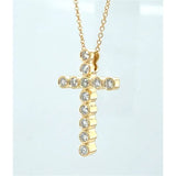 0.55 Ctw natural Bezel Set Diamonds in your choice of 14kt yellow or white gold cross pendant ! Comes with 28in adjustable 14kt gold chain !