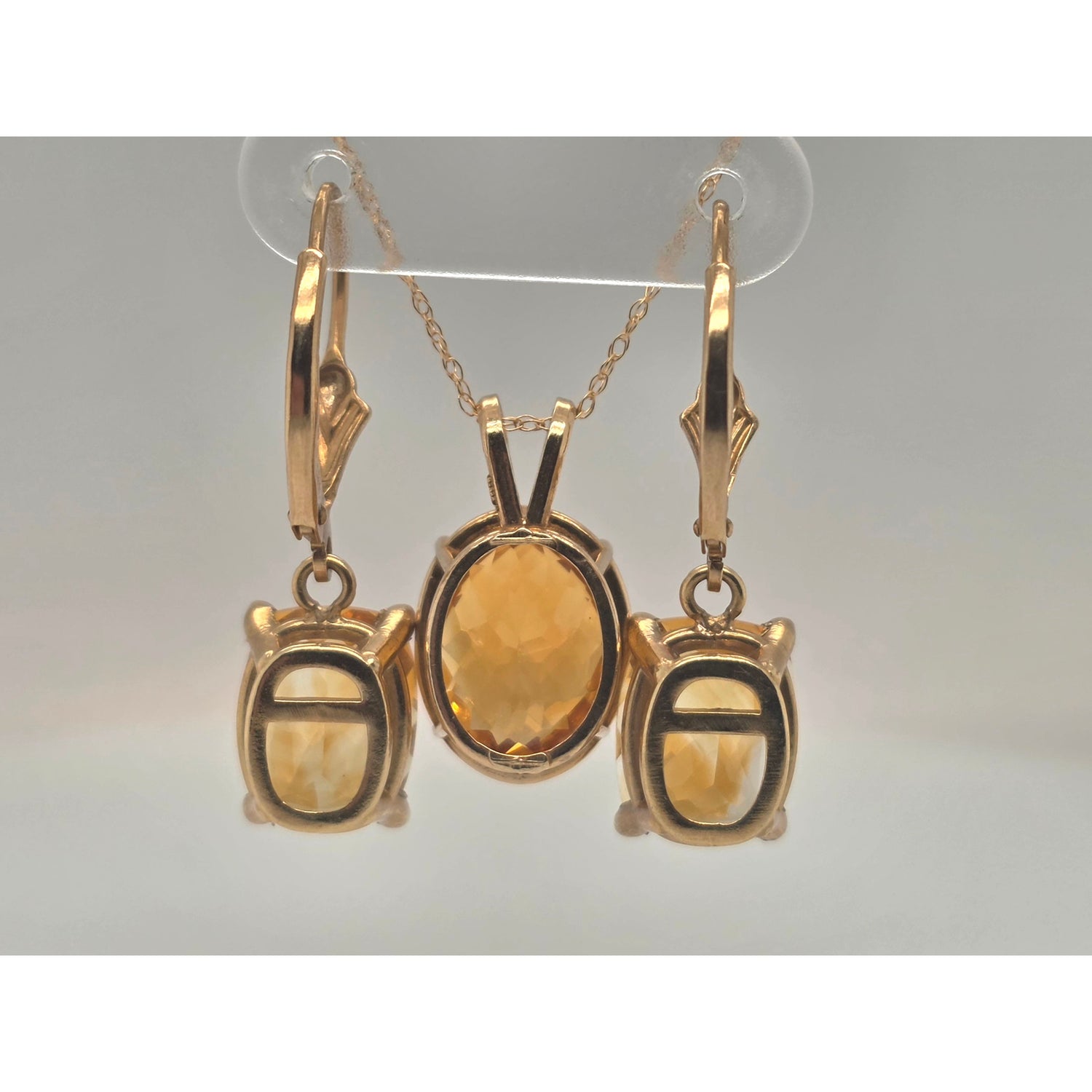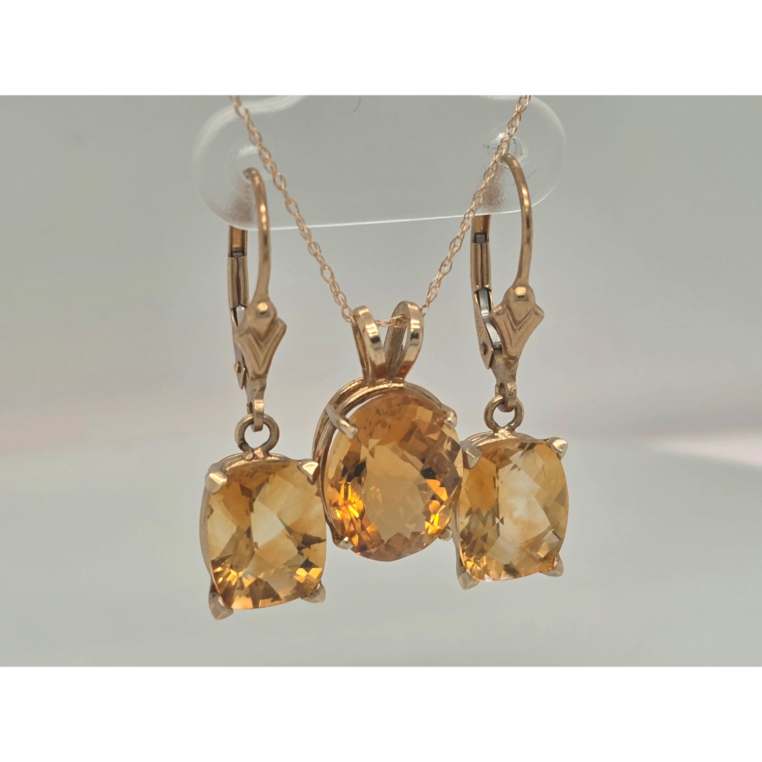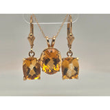 10ctw citrine pendant 18in chain & citrine leverback earrings in 14kt yellow gold set