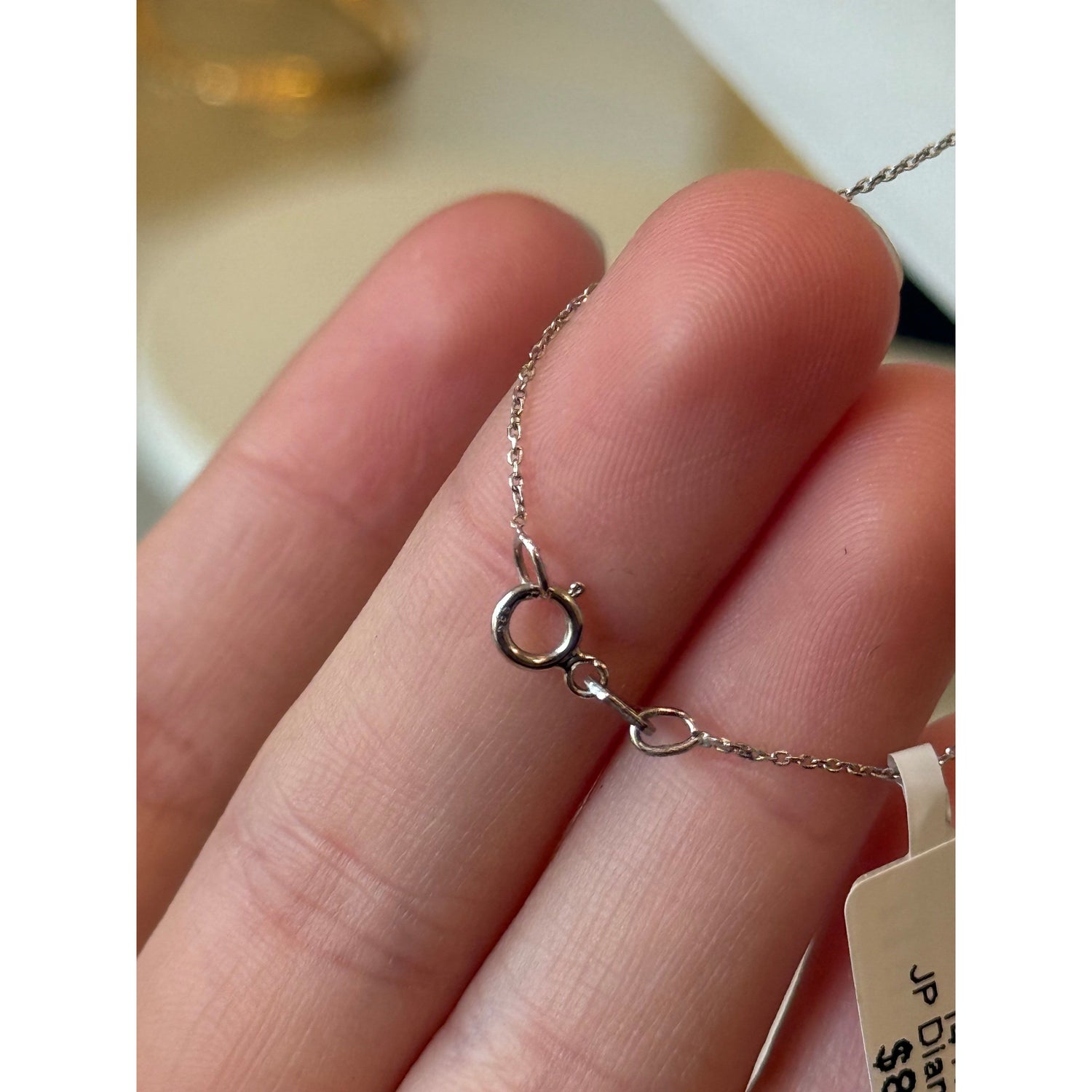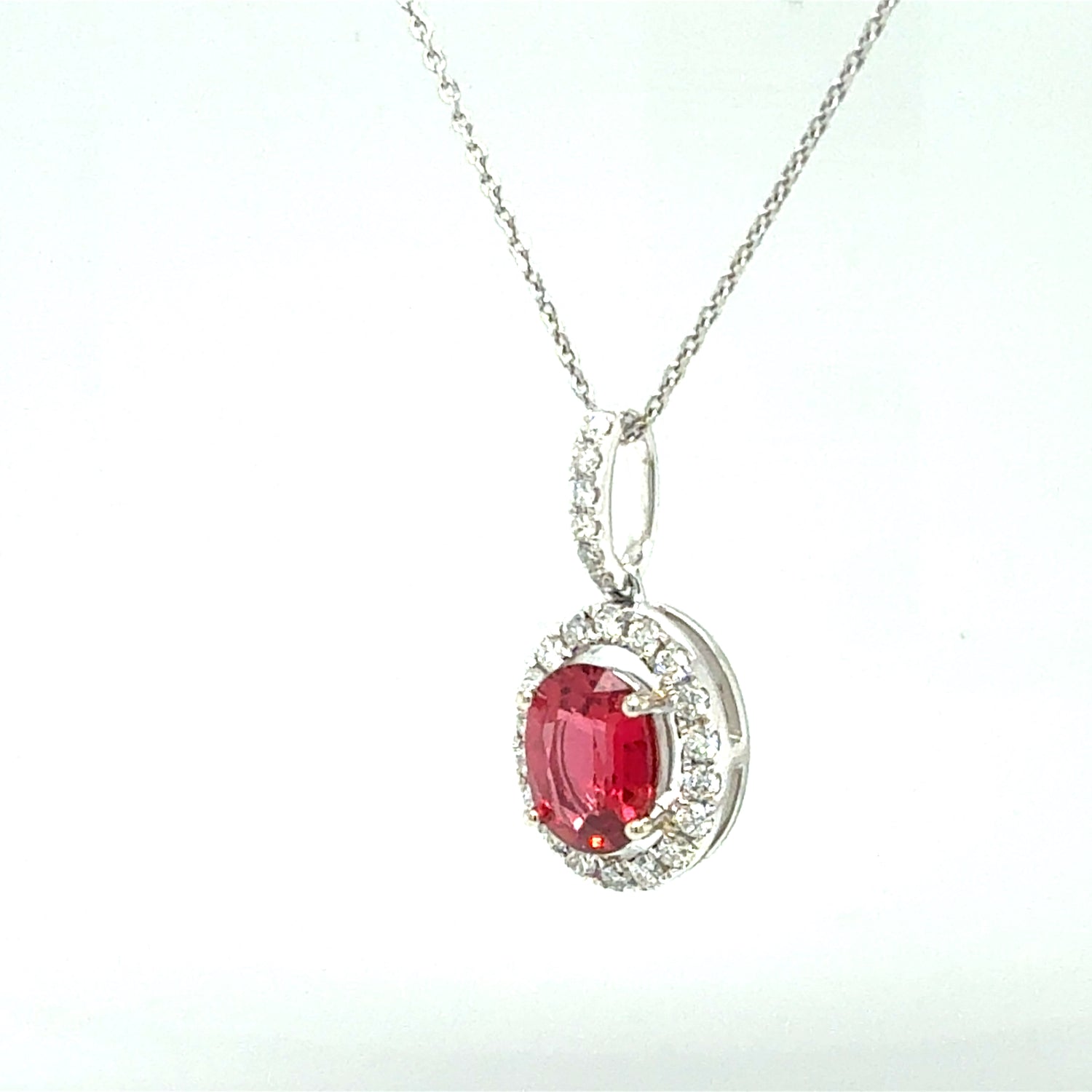0.81 ct red Spinel with 0.18 ctw natural diamond accents set in 14kt white gold setting with chain. 16in long.