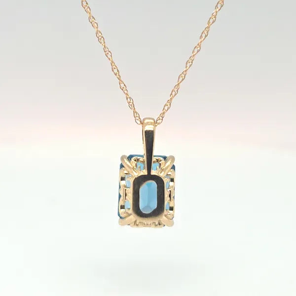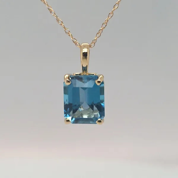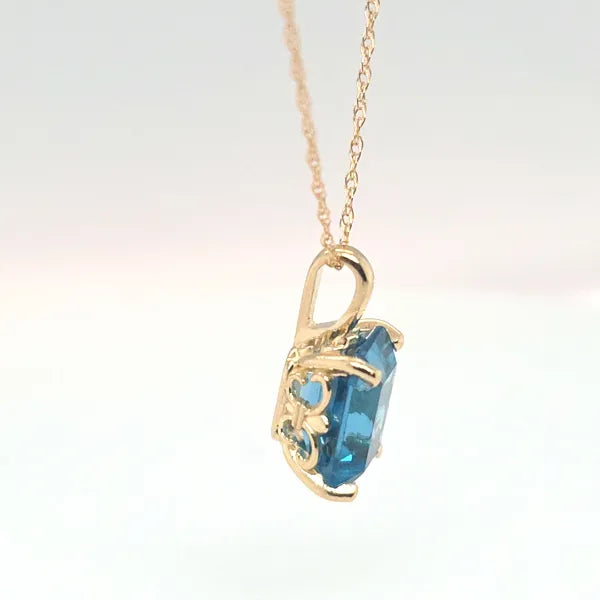 This elegant 14kt yellow gold pendant showcases a 2 ct sparkling topaz and includes an 18-inch matching chain.