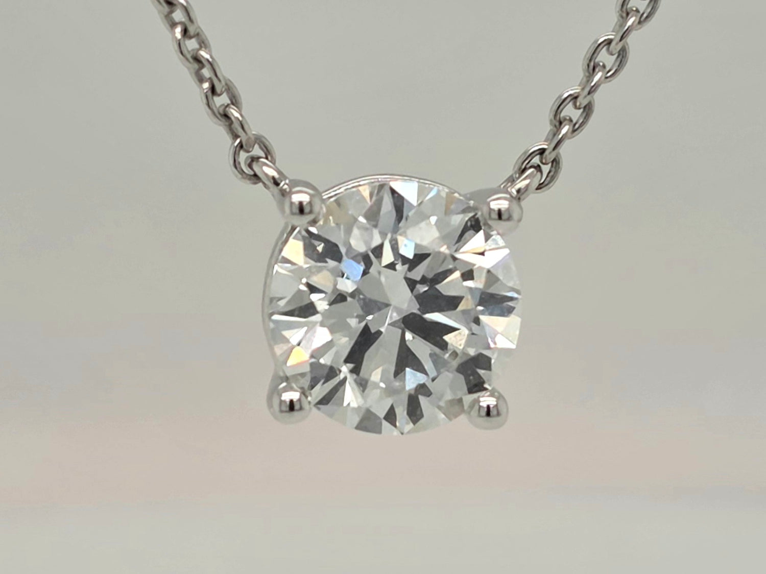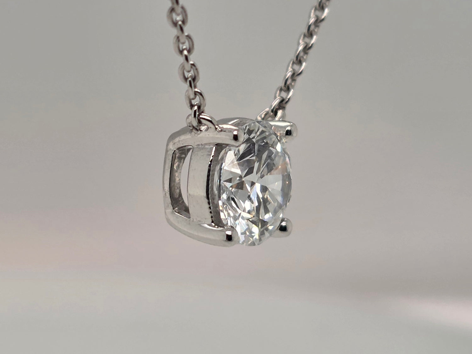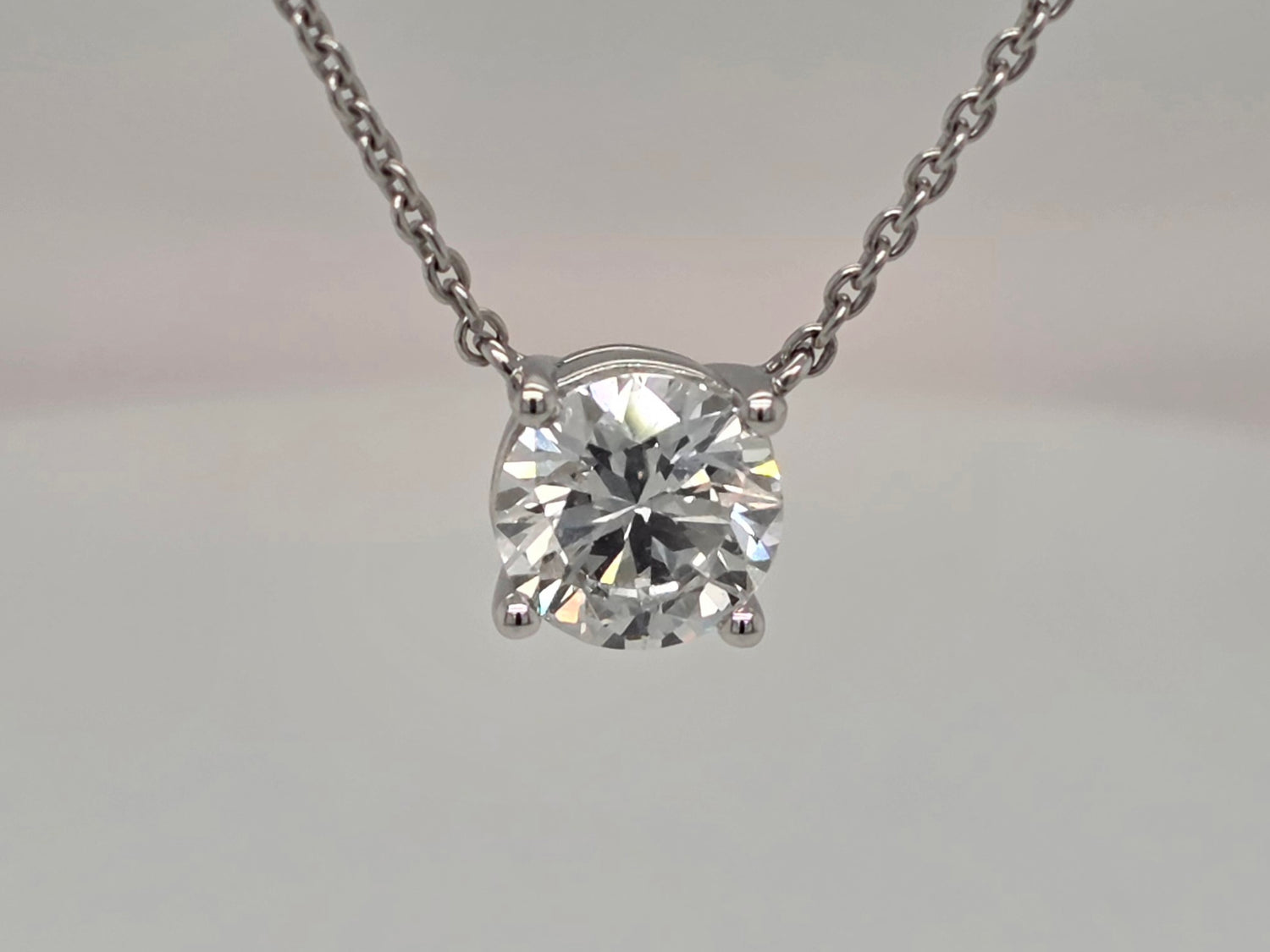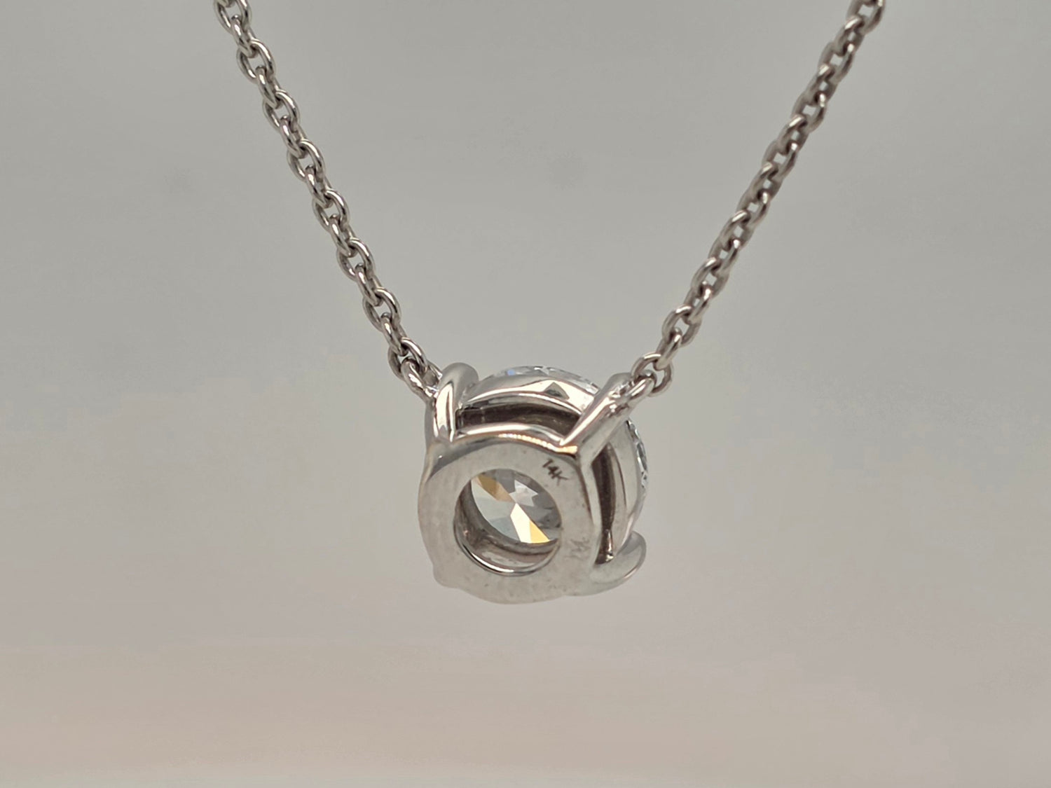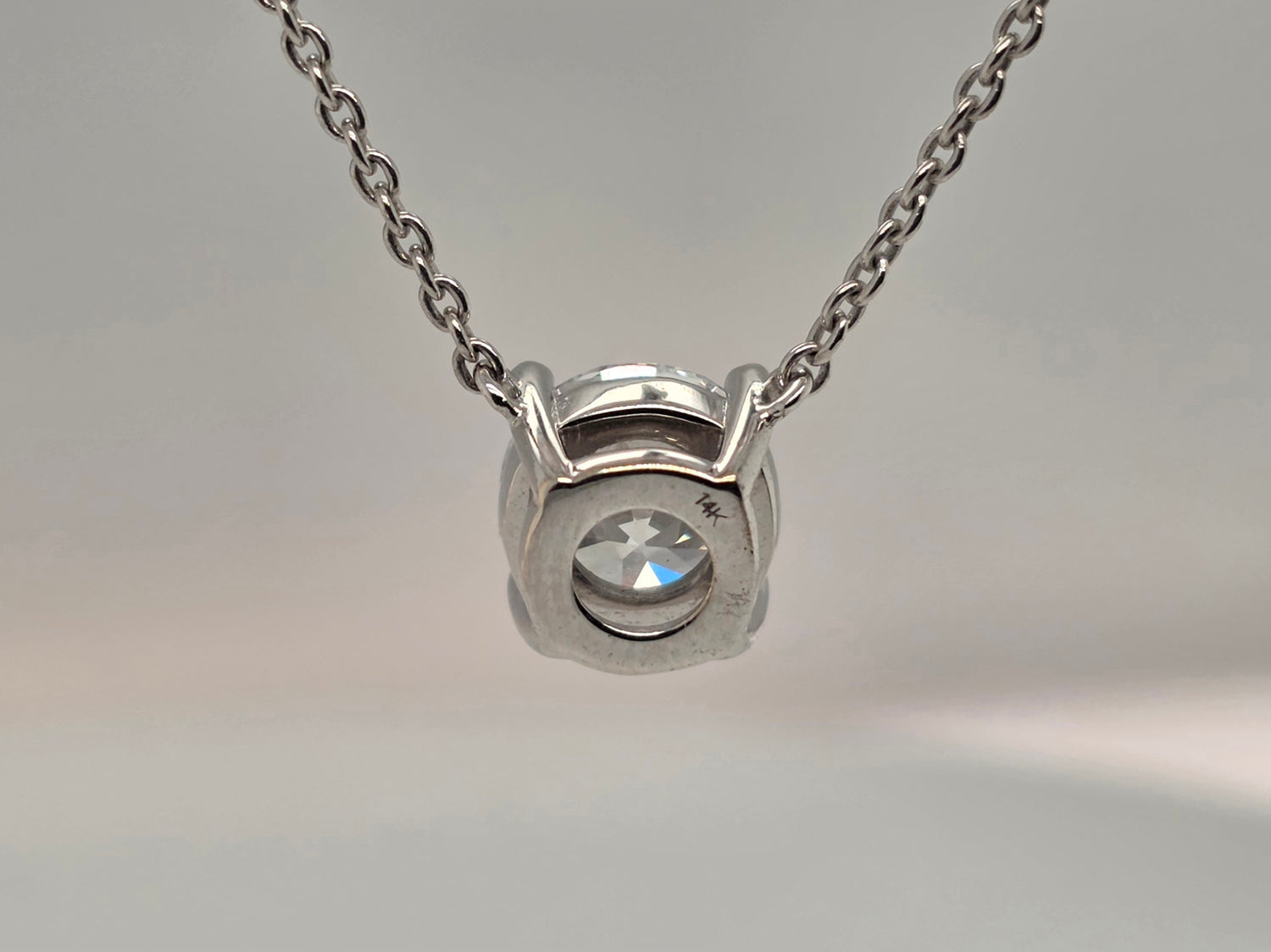 Lab diamond center set pendant 1.5ct in 14kt white gold adjustable 16-18in chain. E-F vs or better on Lab diamond.